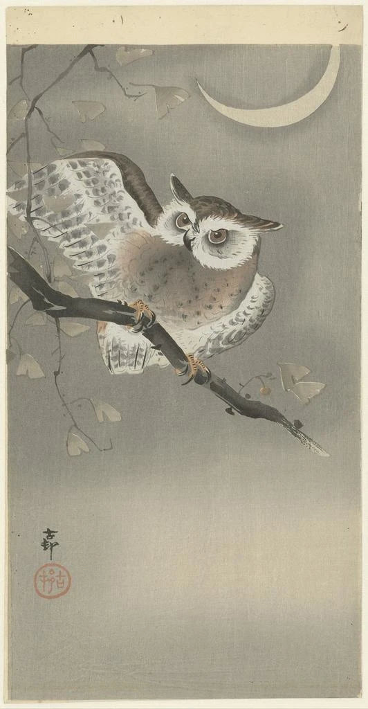 Impresión artística | Búho mediano en un ginkgo - Ohara Koson