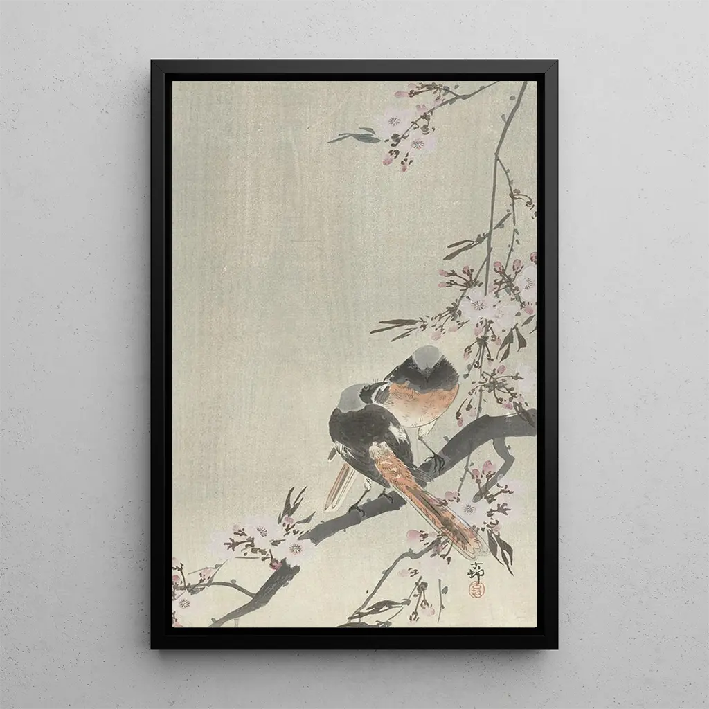 Impresión artística | Dos colas rojas sigiladas con flores de cerezo - Ohara Koson