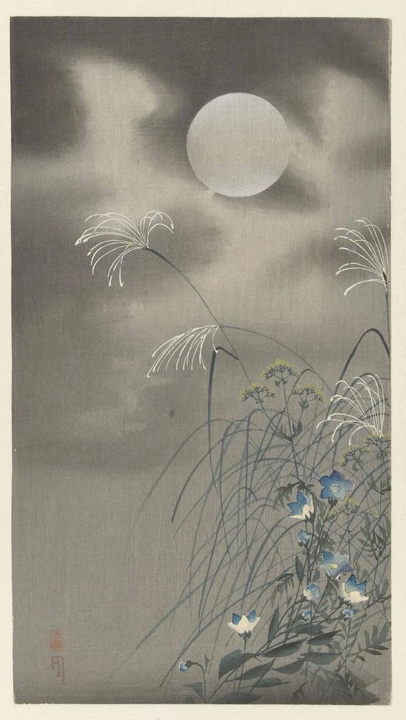 Impresión artística | Hierbas y flores en la luna llena - Ohara Koson