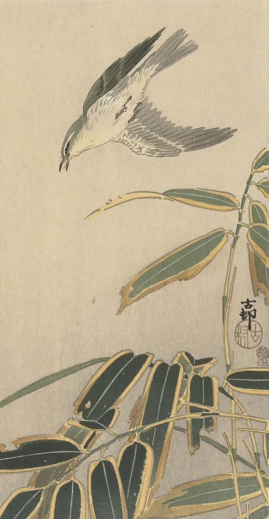 Impresión artística | Golondrina con bambú - Ohara Koson