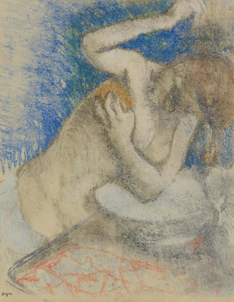 La tela 'Femme se toilettant' de Edgar Degas ilustra perfectamente su interés por las escenas de la vida cotidiana y la intimidad de las mujeres. Degas, con su enfoque único, logra capturar un momento fugaz, un gesto simple, pero lleno de poesía. La composición es delicada, destacando la belleza de las formas y la fluidez de los movimientos. El trabajo de Degas con el pastel revela una sensibilidad a la luz y a la textura, lo que da vida a esta escena íntima. La obra refleja no solo el talento del artista, sino también una época en la que la vida doméstica y las actividades femeninas eran a menudo subestimadas. En un interior moderno, esta obra aporta un toque cálido y personal, al mismo tiempo que subraya la importancia de la intimidad y la autonomía femenina. Para quienes desean celebrar la belleza de la vida cotidiana, una impresión artística en Artem Legrand sería una elección elegante.