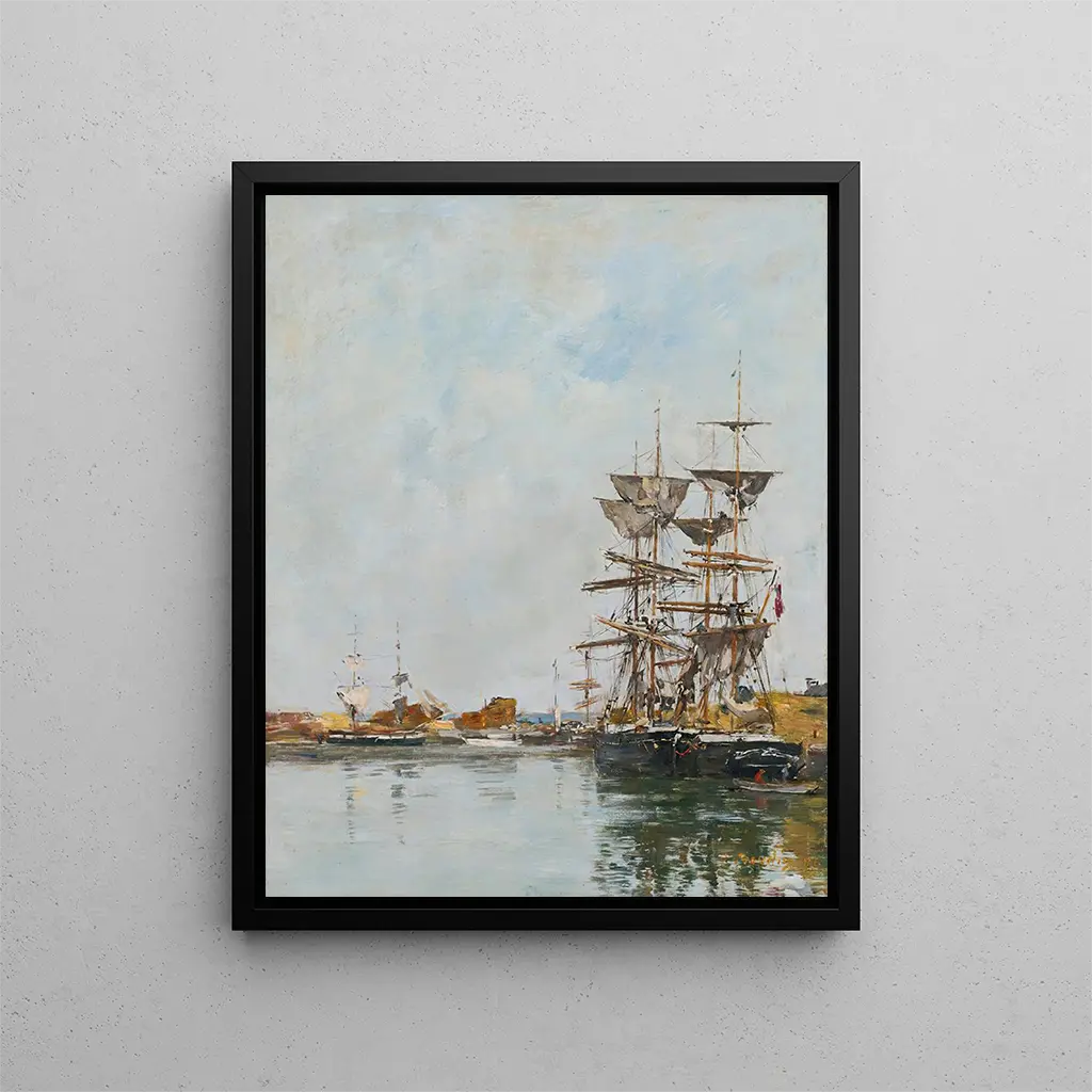 En el fascinante universo de la pintura impresionista, "Deauville Le Bassin" de Eugène Boudin se erige como un testimonio vibrante de la belleza efímera de la costa normanda. Capturando la esencia misma de un día soleado junto al mar, esta obra invita al espectador a sumergirse en una atmósfera de tranquilidad y serenidad. Los matices delicados de azul y verde, combinados con toques ligeros de blanco, evocan el movimiento de las olas y la suavidad de una brisa marina. Al contemplar esta escena, casi se puede sentir el aroma iodado del aire marino y el suave murmullo de las olas, haciendo de esta pintura una verdadera ventana abierta a un mundo pacífico. Estilo y singularidad de la obra La técnica de Boudin se distingue por su uso magistral de la luz y el color. En "Deauville Le Bassin", logra capturar la luminosidad de un momento fugaz, donde el sol juega sobre la superficie del agua, creando reflejos centelleantes que bailan bajo la mirada del espectador. La composición está cuidadosamente equilibrada, con barcos amarrados que parecen flotar con gracia, mientras que el cielo, salpicado de nubes ligeras, añade una dimensión aérea a todo el conjunto. Este cuadro, lejos de ser una simple representación, se convierte en una experiencia sensorial, donde cada pincelada evoca una emoción y una sensación, haciendo que el paisaje cobre vida y sea accesible. La fluidez de las formas y la ligereza de los colores testimonian un estilo único, que combina realismo e impresionismo, colocando a Boudin entre los precursores de este movimiento artístico. El artista y su influencia Eugène Boudin, a menudo considerado como el padre del impresionismo, supo influir en muchos artistas de su época, especialmente en Claude Monet. Su pasión por el mar y los paisajes costeros moldeó su obra, impulsándolo a explorar las variaciones de la luz y las atmósferas marítimas. Nacido en 1824 en Honfleur, Boudin dedicó su vida a la pintura, viajando por toda Francia y capturando la belleza de las costas normandas. Su enfoque innovador de la pintura en plein air abrió el camino a una nueva