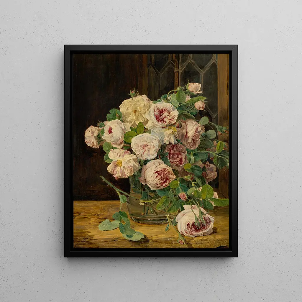 Impresión artística de ramo de rosas en la ventana - Ferdinand Georg Waldmüller – Introducción cautivadora En el universo vibrante del arte del siglo XIX, la obra "Ramo de rosas en la ventana" de Ferdinand Georg Waldmüller se distingue por su encanto y delicadeza. Esta pintura, que evoca la belleza efímera de las flores, transporta al espectador a un momento suspendido, donde la naturaleza y el interior se encuentran con gracia. A través de esta obra, Waldmüller logra capturar la esencia misma de la vida doméstica, al tiempo que destaca la espléndida belleza de las rosas, símbolo de amor y belleza. El artista nos invita a contemplar este ramo, no solo como una simple representación floral, sino también como una invitación a reflexionar sobre el paso del tiempo y lo efímero. Estilo y singularidad de la obra El estilo de Waldmüller se caracteriza por un realismo impactante, donde cada detalle es cuidadosamente observado y representado con una precisión notable. En "Ramo de rosas en la ventana", utiliza una paleta de colores delicados, combinando tonos pastel y destellos de luz, para dar vida a los pétalos de las rosas. La composición está magistralmente orquestada: el ramo, colocado en la ventana, parece dialogar con el mundo exterior, creando un vínculo entre el interior y el exterior. La luz natural que filtra a través del cristal añade una dimensión poética a la obra, iluminando las rosas con un resplandor suave y cálido. Waldmüller logra así transformar un simple ramo en una escena viva, donde cada rosa cuenta una historia. El artista y su influencia Ferdinand Georg Waldmüller, nacido en 1793 en Austria, es considerado a menudo uno de los maestros del realismo austríaco. Su carrera está marcada por una búsqueda constante de la belleza en la vida cotidiana, que captura con una sensibilidad única. Influenciado por el movimiento romántico, Waldmüller se destaca por su capacidad para combinar la representación fiel de la naturaleza con un enfoque emocional, tocando así el corazón de sus contemporáneos. Sus obras, a menudo impregnadas de nostalgia, reflejan una visión idealizada de la vida burguesa, al tiempo que resaltan la belleza de los momentos simples. Al pintar ramos de flores, paisajes y escenas de la vida doméstica,