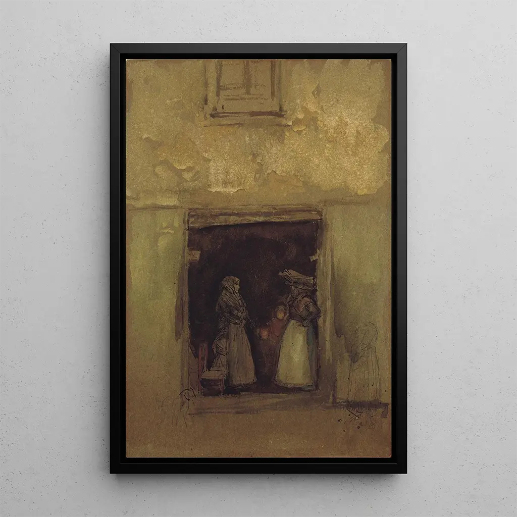 Les Commères, una impresión artística emblemática de James Abbott McNeill Whistler, nos sumerge en una escena animada donde figuras femeninas participan en una conversación animada. La composición está cuidadosamente diseñada, cada personaje ocupa un lugar preciso, creando así un equilibrio visual. Los colores, brillantes y variados, evocan una atmósfera cálida y acogedora, mientras que la técnica de Whistler, que combina impresionismo y realismo, da vida a cada detalle. Esta impresión artística invita al espectador a adentrarse en la intimidad de la escena, a sentir la energía de los intercambios y a apreciar la belleza de las interacciones humanas.