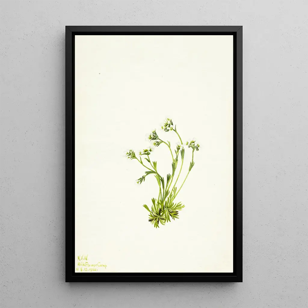 La impresión artística de Saxifrage Saxifraga caespitosa nos sumerge en un universo floral delicado, donde cada detalle está cuidadosamente observado. Los tonos verdes y blancos se combinan armoniosamente, evocando la frescura de las montañas. La técnica de acuarela, utilizada por Mary Vaux Walcott, confiere a esta obra una ligereza y una transparencia que capturan la luz de una manera única. La atmósfera que emana de este lienzo es tranquilizadora, invitando a la contemplación de las maravillas de la naturaleza. Cada pétalo parece vibrar bajo la brisa, creando una conexión íntima entre el observador y el mundo natural.