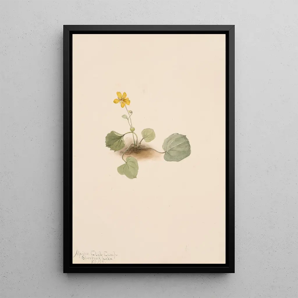 La impresión artística de la Violeta orbicular, también conocida como Viola orbiculata, captura la esencia misma de la naturaleza con sus tonos suaves y sus formas redondeadas. Las tonalidades de violeta y blanco se mezclan con gracia, creando una atmósfera relajante y contemplativa. La artista Mary Vaux Walcott, a través de su técnica minuciosa, logra transmitir la fragilidad y la belleza efímera de esta flor. Cada pétalo parece vibrar bajo la luz, invitando al espectador a una exploración visual que evoca las praderas y los bosques donde estas violetas florecen.