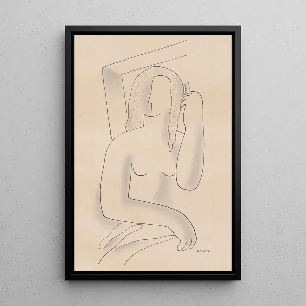 Peinados : una danza delicada de colores y formas En la obra "Peinados", Mikuláš Galanda nos sumerge en un universo donde la suavidad de los gestos se combina con una paleta de colores vibrantes. Los trazos de pincel, a la vez fluidos y precisos, evocan un movimiento gracioso, casi coreográfico. Los tonos pastel se superponen, creando una atmósfera ligera y aérea. Galanda logra capturar la esencia de un momento íntimo, donde el sujeto parece perdido en sus pensamientos, ofreciendo al espectador una invitación a la contemplación. Este lienzo, por su equilibrio armonioso, evoca una serenidad palpable, invitando a cada uno a detenerse y apreciar la belleza del instante. Mikuláš Galanda : un maestro del arte moderno eslovaco Mikuláš Galanda, figura emblemática del arte moderno eslovaco, marcó su época por su enfoque innovador y su sensibilidad artística. Nacido en 1895, fue influenciado por el movimiento expresionista y las corrientes vanguardistas de su tiempo. Galanda supo integrar elementos de la cultura eslovaca mientras se abría a las influencias internacionales, lo que enriqueció su obra. Su estilo único, caracterizado por formas estilizadas y colores audaces, lo convirtió en un artista imprescindible del siglo XX. "Peinados" testimonia esta búsqueda constante de armonía entre tradición y modernidad, un legado que continúa inspirando a los artistas contemporáneos. Una adquisición decorativa con múltiples ventajas La impresión artística de "Peinados" es una pieza decorativa que sabrá realzar cualquier espacio, ya sea una sala, una oficina o un dormitorio. Su calidad de impresión y fidelidad a los colores originales garantizan un resultado estético excepcional. Al elegir este cuadro, aportas un toque de elegancia y serenidad a tu interior. La obra de Galanda, por su atmósfera relajante, invita a la reflexión y a la ensoñación, haciendo de este lienzo una opción ideal para quienes buscan belleza y profundidad en su decoración.