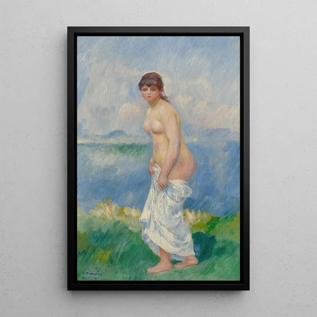 Baigneuse de pie : una oda a la belleza femenina En esta obra emblemática, Pierre-Auguste Renoir captura la gracia y la sensualidad de una bañista de pie, envuelta en una luz suave y cálida. Los colores pastel se entrelazan armoniosamente, creando una atmósfera de serenidad e intimidad. La técnica impresionista de Renoir se manifiesta a través de trazos de pincel fluidos y vibrantes, que dan vida a la delicada piel de la modelo. Este cuadro evoca una sensación de frescura, como si se pudiera casi sentir el agua sobre la piel de la bañista, celebrando la belleza natural y la feminidad. Pierre-Auguste Renoir: maestro del impresionismo Pierre-Auguste Renoir, figura principal del movimiento impresionista, supo trascender su época mediante su enfoque único de la luz y los colores. Nacido en 1841, fue influenciado por artistas como Monet y Degas, pero desarrolló un estilo propio, poniendo énfasis en la alegría de vivir y la armonía de las formas. Renoir a menudo representaba escenas de la vida cotidiana, retratos y paisajes, pero es su capacidad para inmortalizar la belleza femenina lo que le valió un lugar destacado en la historia del arte. El período impresionista, que surgió en los años 1870, se caracterizó por una ruptura con las convenciones académicas, y Renoir fue uno de sus principales artífices. Una adquisición decorativa con múltiples ventajas La impresión artística de Baigneuse debout es una elección ideal para embellecer su interior, ya sea en una sala de estar, una oficina o un dormitorio. Su calidad de impresión artística fiel permite sentir toda la emoción y belleza de la obra original, aportando además un toque artístico a su decoración. Este cuadro, con sus tonos suaves y su tema cautivador, atrae la mirada y genera conversaciones. Al integrar esta obra en su espacio, no solo adquiere una pieza de arte, sino también una invitación a la contemplación y la evasión, enriqueciendo así su entorno de vida.