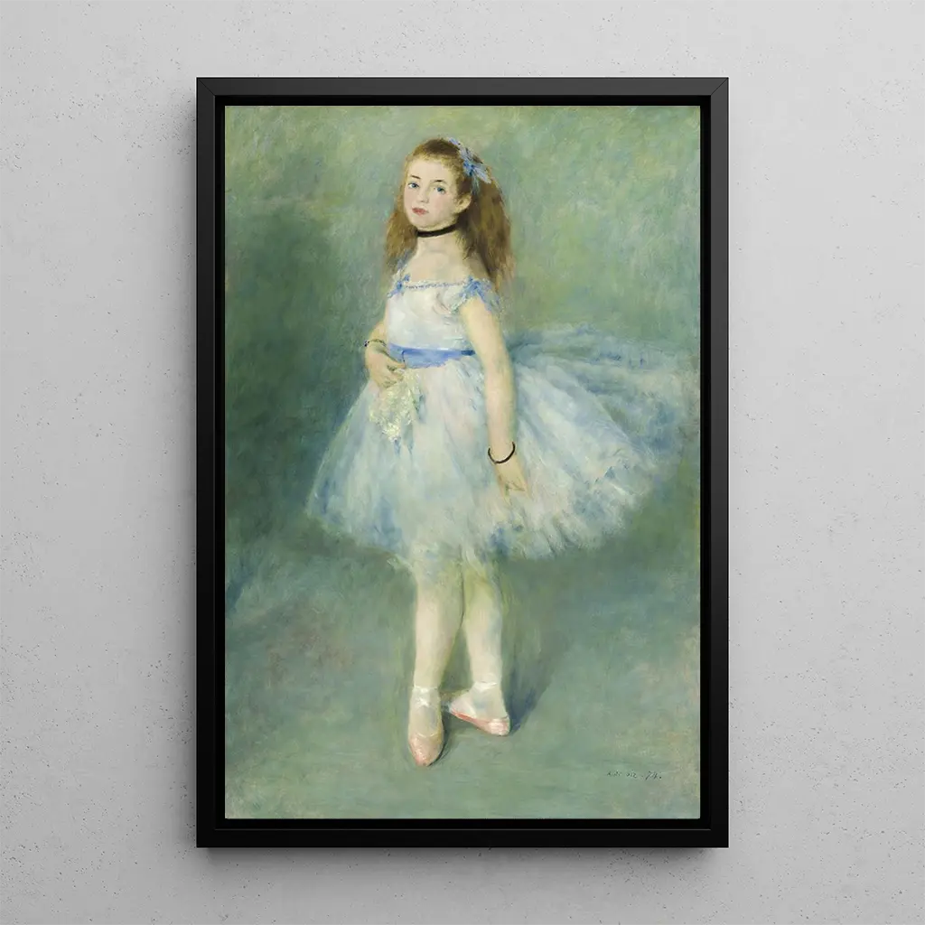 "La Danseuse" de Pierre-Auguste Renoir captura la esencia misma de la gracia y de la ligereza. En esta obra, el movimiento es palpable, cada gesto de la bailarina parece vibrar bajo el pincel del artista. Los tonos delicados y las matices de rosa y azul crean una atmósfera suave y soñadora, mientras que la composición destaca la silueta esbelta de la bailarina. Renoir logra transmitir la energía y la pasión de la danza, invitando al espectador a sentir la emoción de este momento fugaz, congelado en el tiempo.