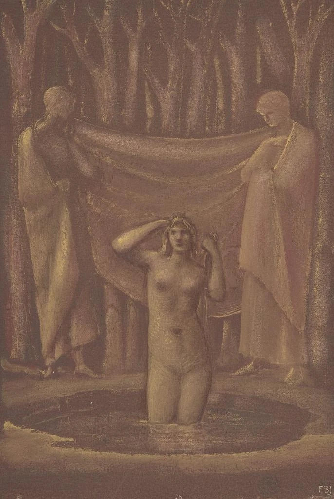 Sir Edward Coley Burne-Jones, nacido en 1833, es uno de los artistas principales del movimiento de impresión artística, que surgió a mediados del siglo XIX en reacción contra el realismo victoriano. Influenciado por el romanticismo y las artes decorativas, Burne-Jones supo crear un estilo único, combinando elementos medievales y mitológicos. "Bain de Vénus" es emblemático de su enfoque, fusionando sensualidad y espiritualidad. Su trabajo ha tenido una influencia duradera en el arte británico y europeo, y es reconocido por su capacidad para transformar relatos clásicos en obras de gran profundidad emocional.
