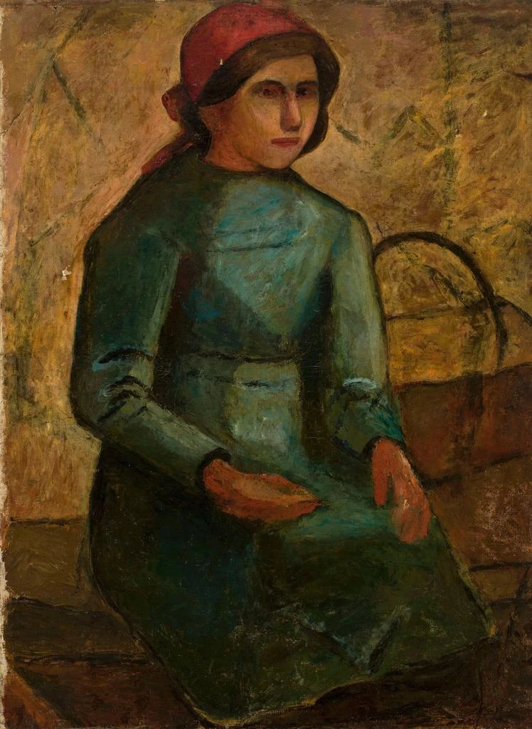 Impresión artística | Niña con vestido verde y cesta - Tadeusz Makowski