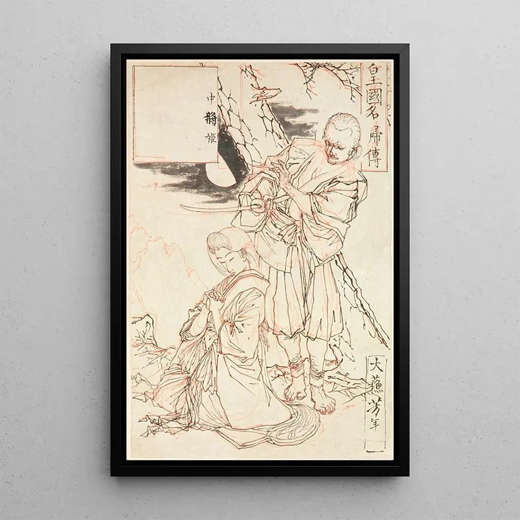 Tsukioka Yoshitoshi, nacido en 1839, es considerado uno de los últimos grandes maestros del ukiyo-e. Su obra, marcada por influencias variadas, testimonia un período de transición en el arte japonés, entre tradición y modernidad. Yoshitoshi supo integrar elementos contemporáneos respetando las técnicas ancestrales, lo que le permitió destacarse de sus predecesores. Su capacidad para contar historias a través de sus estampas ha hecho de él un artista imprescindible, cuyo impacto aún se siente hoy en día. "Chjhime" es un ejemplo perfecto de su talento para evocar emociones profundas mediante imágenes visualmente impactantes.
