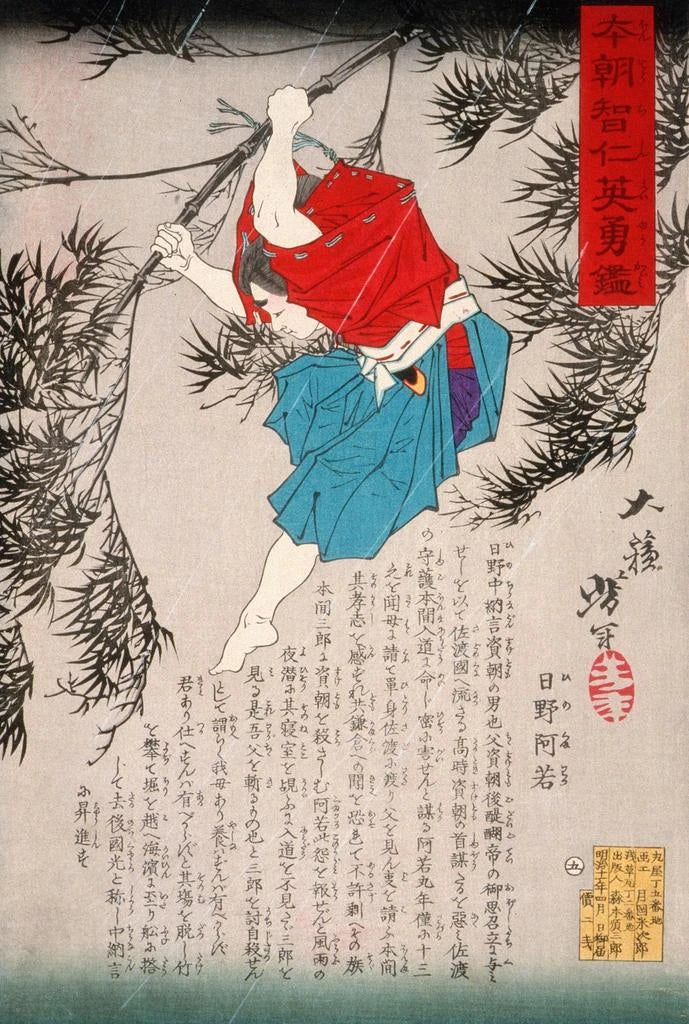 Impresión artística | Hino Kumawaka saltando del bambú - Tsukioka Yoshitoshi
