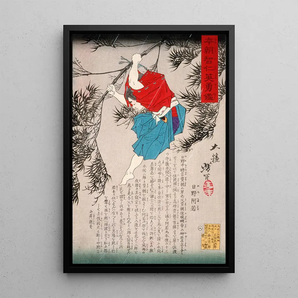 La impresión artística "Hino Kumawaka saltando del bambú" es una pieza decorativa ideal para aportar un toque de energía y dinamismo a su interior. Ya sea en una sala moderna, una oficina creativa o un dormitorio zen, este lienzo sabrá captar la atención de sus invitados. Su calidad de impresión garantiza una fidelidad excepcional a los detalles de la obra original, permitiendo apreciar plenamente el talento de Yoshitoshi. Al integrar esta impresión artística en su decoración, enriquece su espacio con una obra de arte que evoca tanto la belleza de la naturaleza como la riqueza de la cultura japonesa.