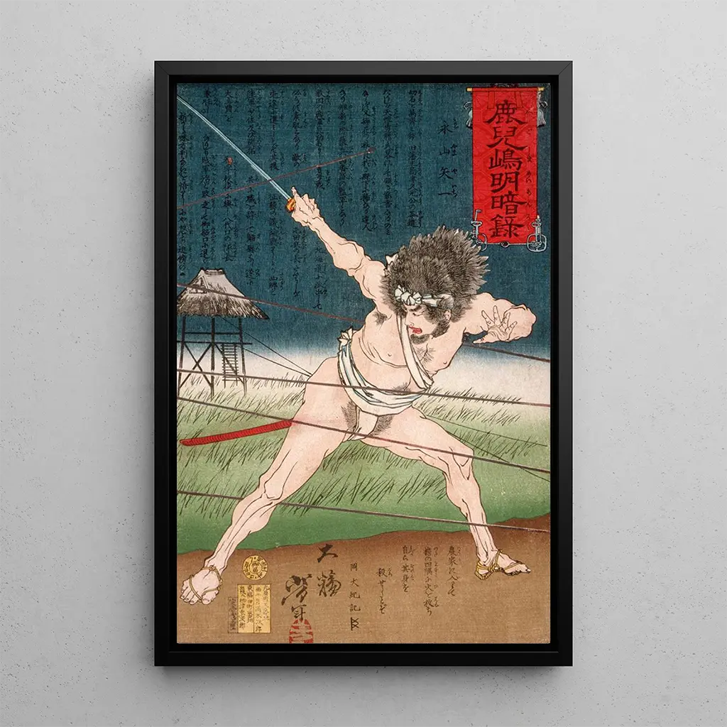 En esta obra impactante, Tsukioka Yoshitoshi captura un instante de tensión dramática donde Nagayama Yaichi, héroe de la leyenda, esquiva hábilmente las balas. Los colores vibrantes y los contrastes llamativos dan vida a esta escena, mientras que la técnica de la impresión artística ukiyo-e revela una atención al detalle notable. La atmósfera está cargada de energía, cada elemento de la composición, desde los movimientos fluidos del personaje hasta los destellos de luz, evoca una lucha entre la vida y la muerte. Esta impresión artística del cuadro "Nagayama Yaichi esquivando las balas" es una verdadera invitación a explorar la valentía y el coraje.