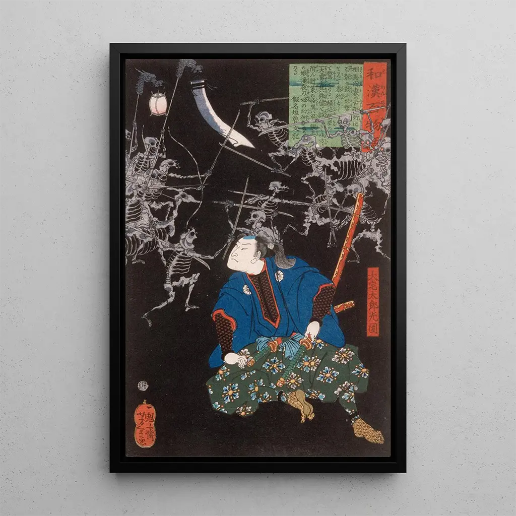 Tsukioka Yoshitoshi, nacido en 1839, es reconocido como uno de los últimos grandes maestros de la impresión artística ukiyo-e, un arte tradicional japonés. Su carrera estuvo marcada por influencias variadas, que iban desde las tradiciones antiguas hasta las nuevas formas de arte que emergían en su época. La impresión artística "ya Tar Mitsukune observant des squelettes" ilustra su talento para fusionar elementos folclóricos con técnicas modernas, creando obras que hablan tanto a los amantes del arte tradicional como a los contemporáneos. Yoshitoshi supo capturar la esencia de los relatos populares, añadiendo su propia visión única.