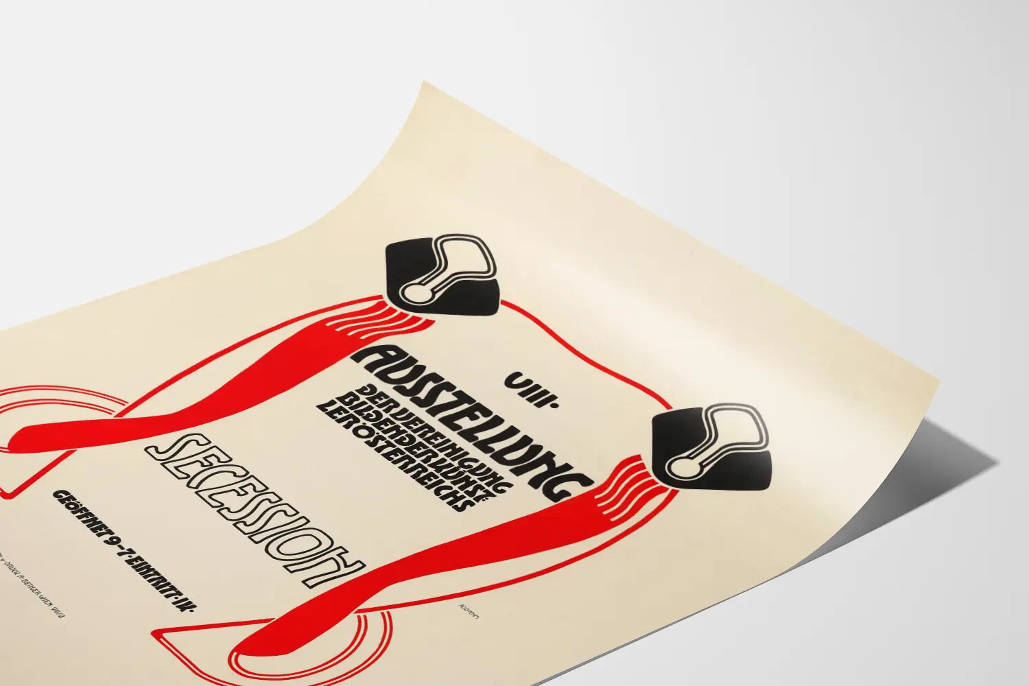 Discover this Art Nouveau style poster depicting the official announcement for the 8th Exhibition of the Vienna Secession, an association of artists in Austria. This poster stands out with its clean graphic design and flowing lines typical of the Secession movement, featuring a composition centered around abstract shapes in red and black on a light background. The design highlights stylized, calligraphic text announcing the exhibition of Austrian visual artists, combining original typography with decorative elements inspired by Art Nouveau. This vintage-style wall decoration offers a unique artistic and historical atmosphere, perfect for art and design enthusiasts of the early twentieth century. This poster-sized wall art can enhance both contemporary and classic interiors, adding a graphic and elegant touch. Ideal for a living room, office, or creative space, it complements both minimalist and more decorative styles. This artistically designed exhibition poster is a must-have for collectors of wall decor focused on art history and graphic design. Its limited color palette, balance between geometric and organic shapes, and visual expression of the Secession period make it a remarkable decorative piece to hang on your wall. Through this poster, immerse yourself in the fascinating world of the Vienna Secession and let this distinctive motif beautifully adorn your walls.