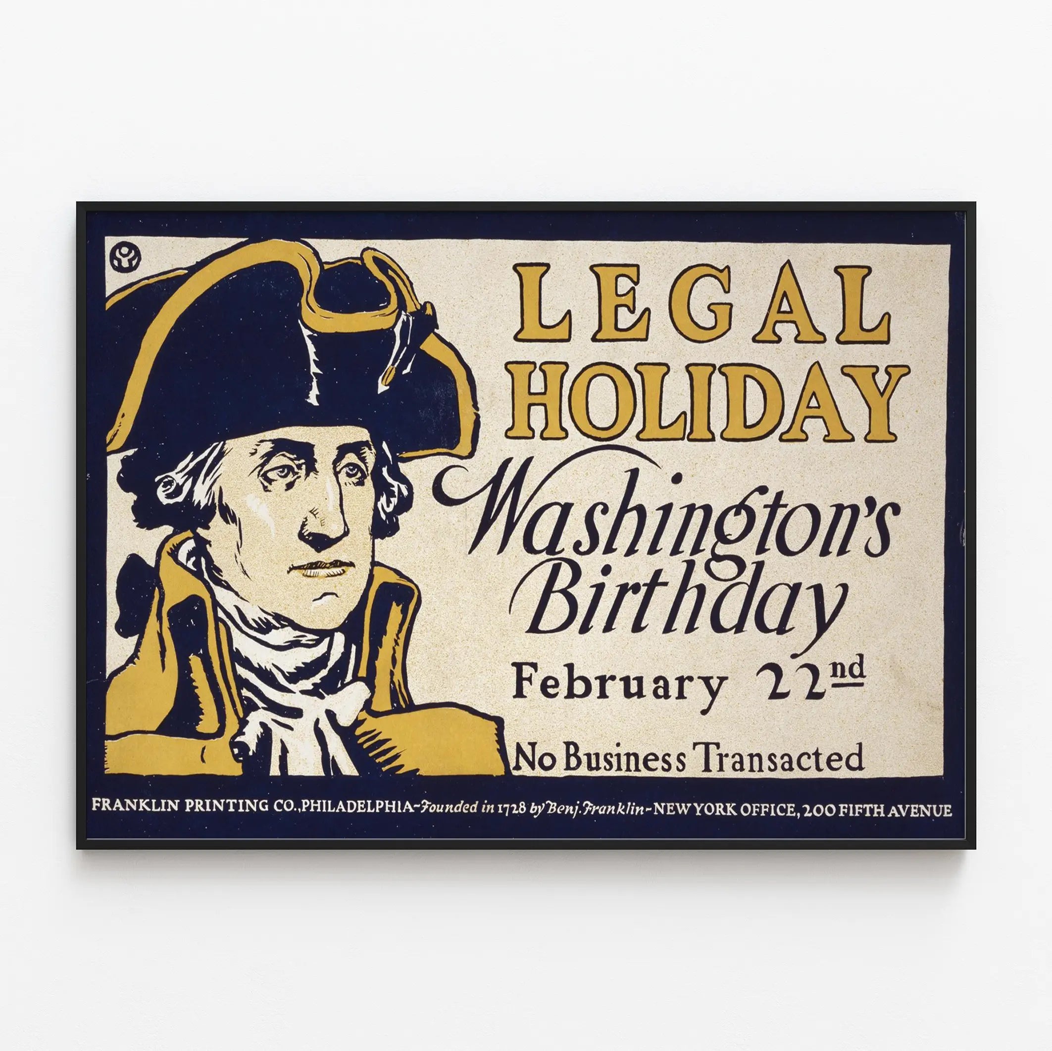 Affiche Vintage Fête Légale Anniversaire de Washington 22 Février