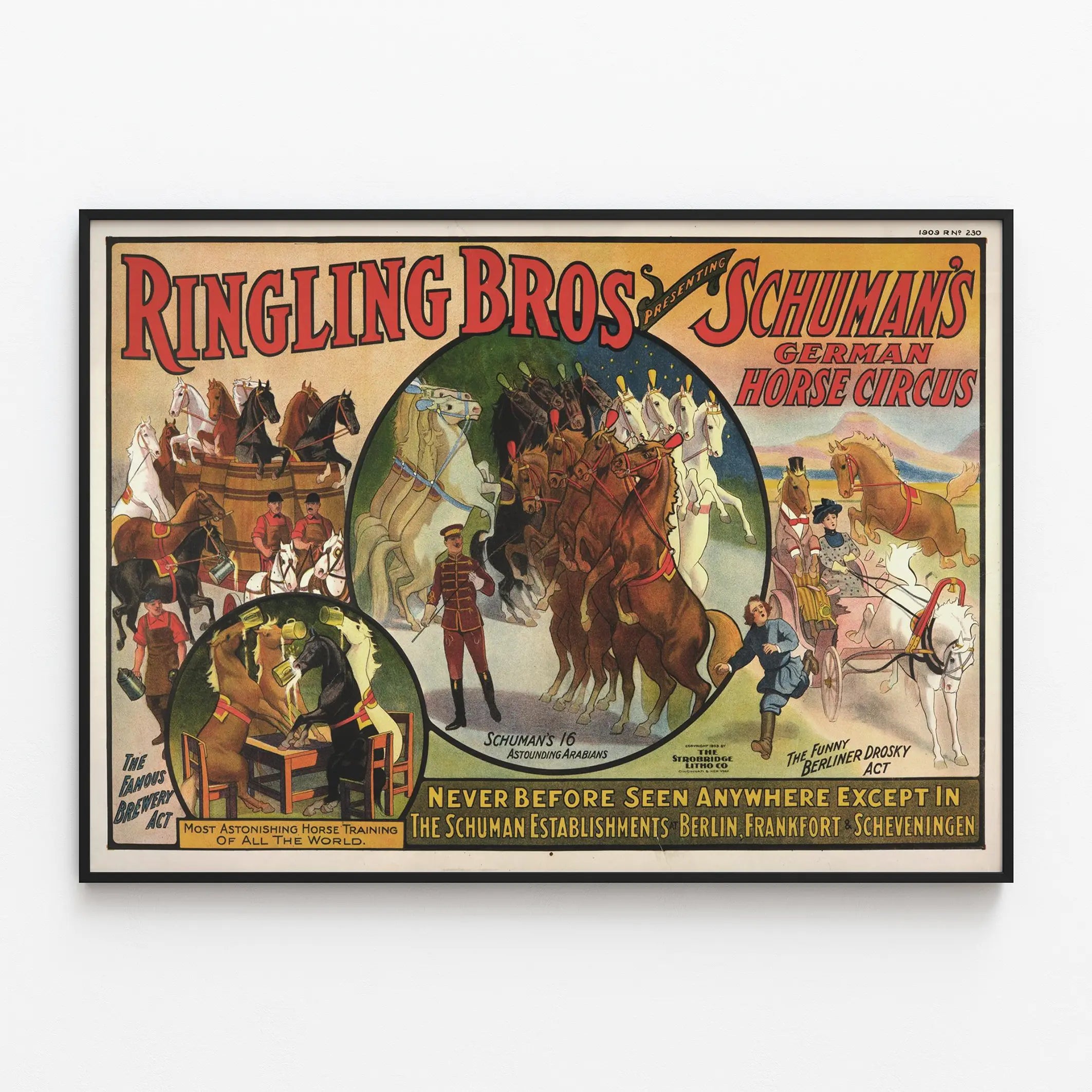 Vintage poster Ringling Bros Schuman's German Horse Circus 1909