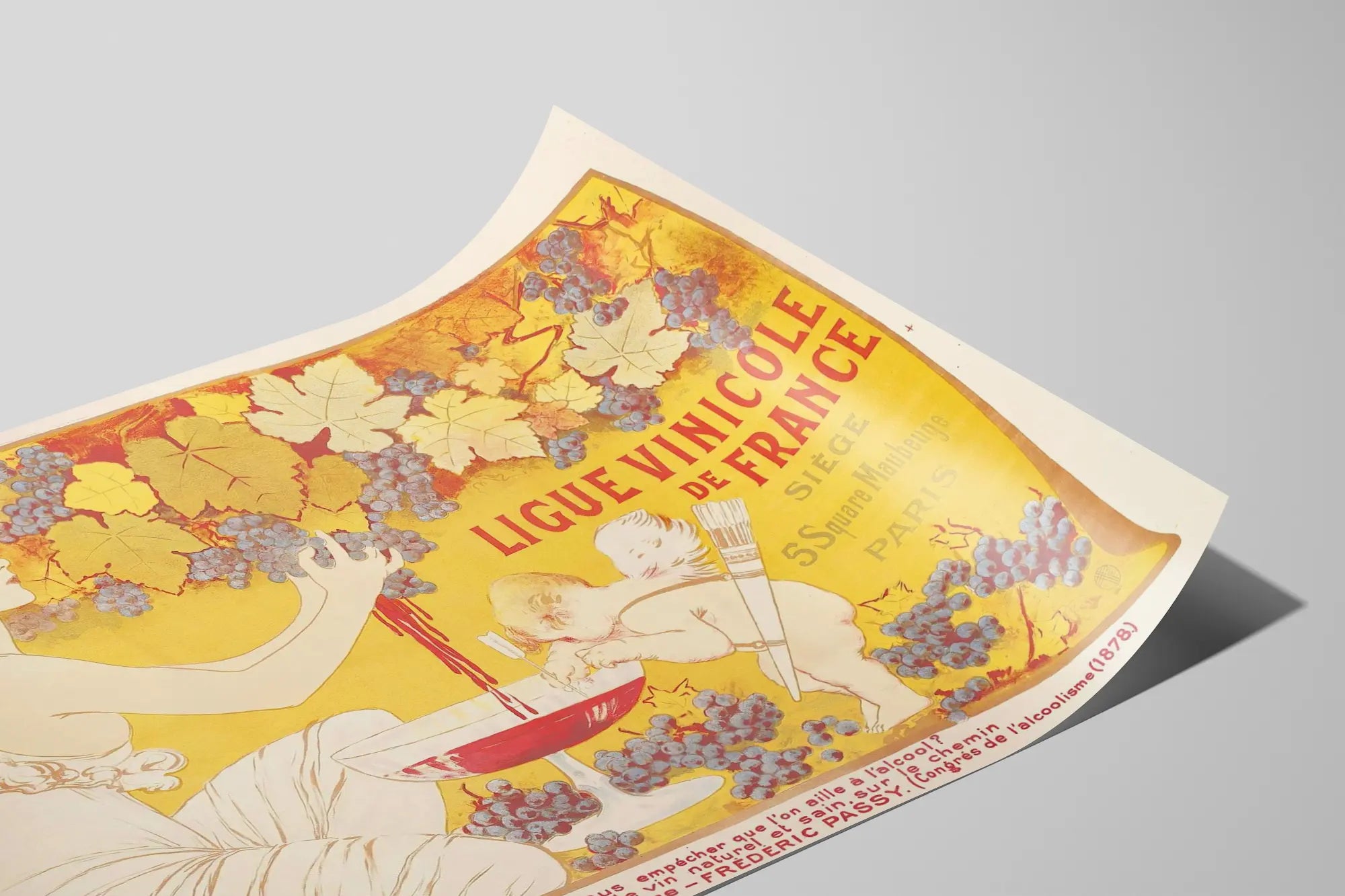 Vintage Poster of the French Winegrowers' League, Grape Cluster and Cupid