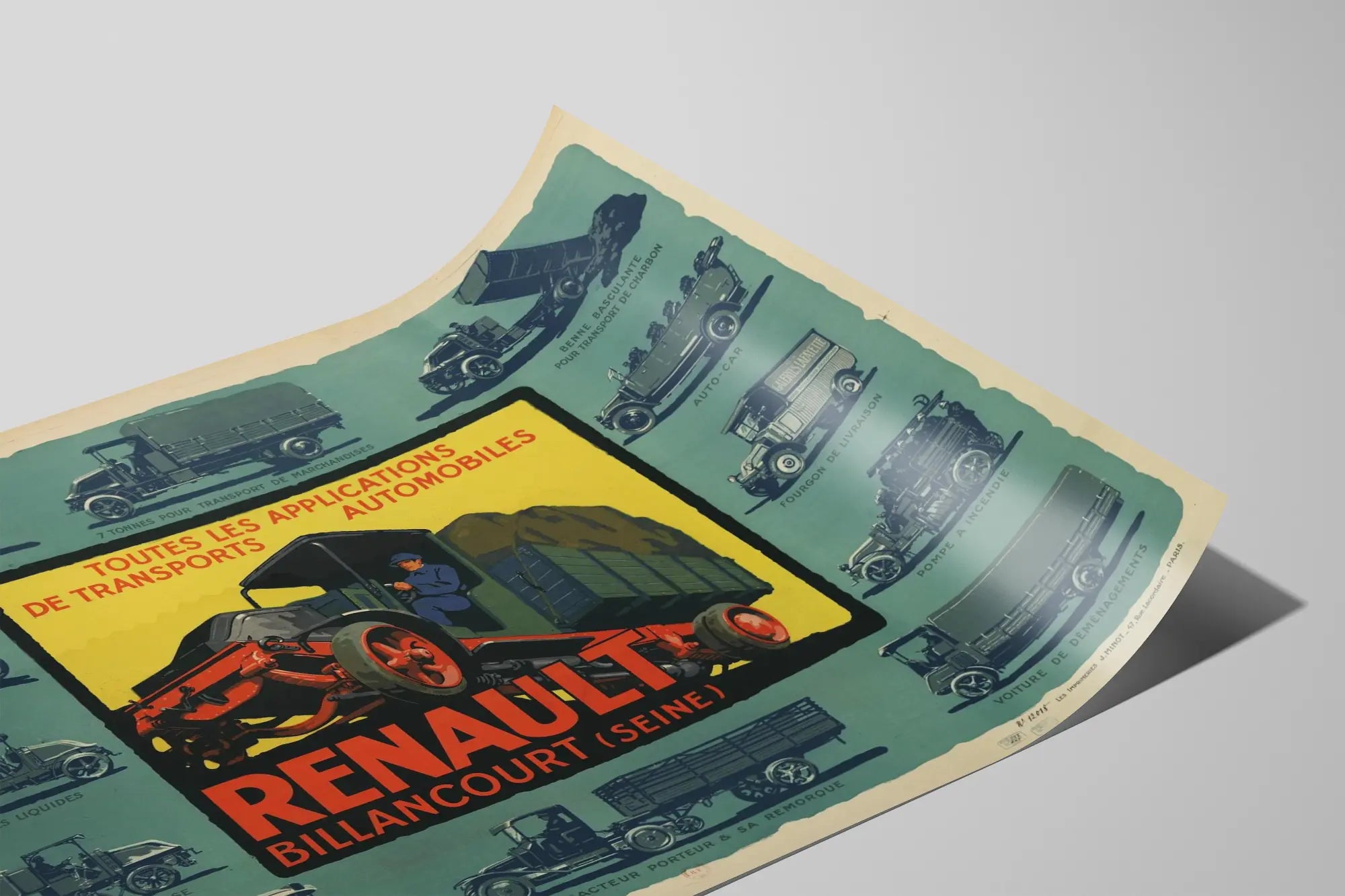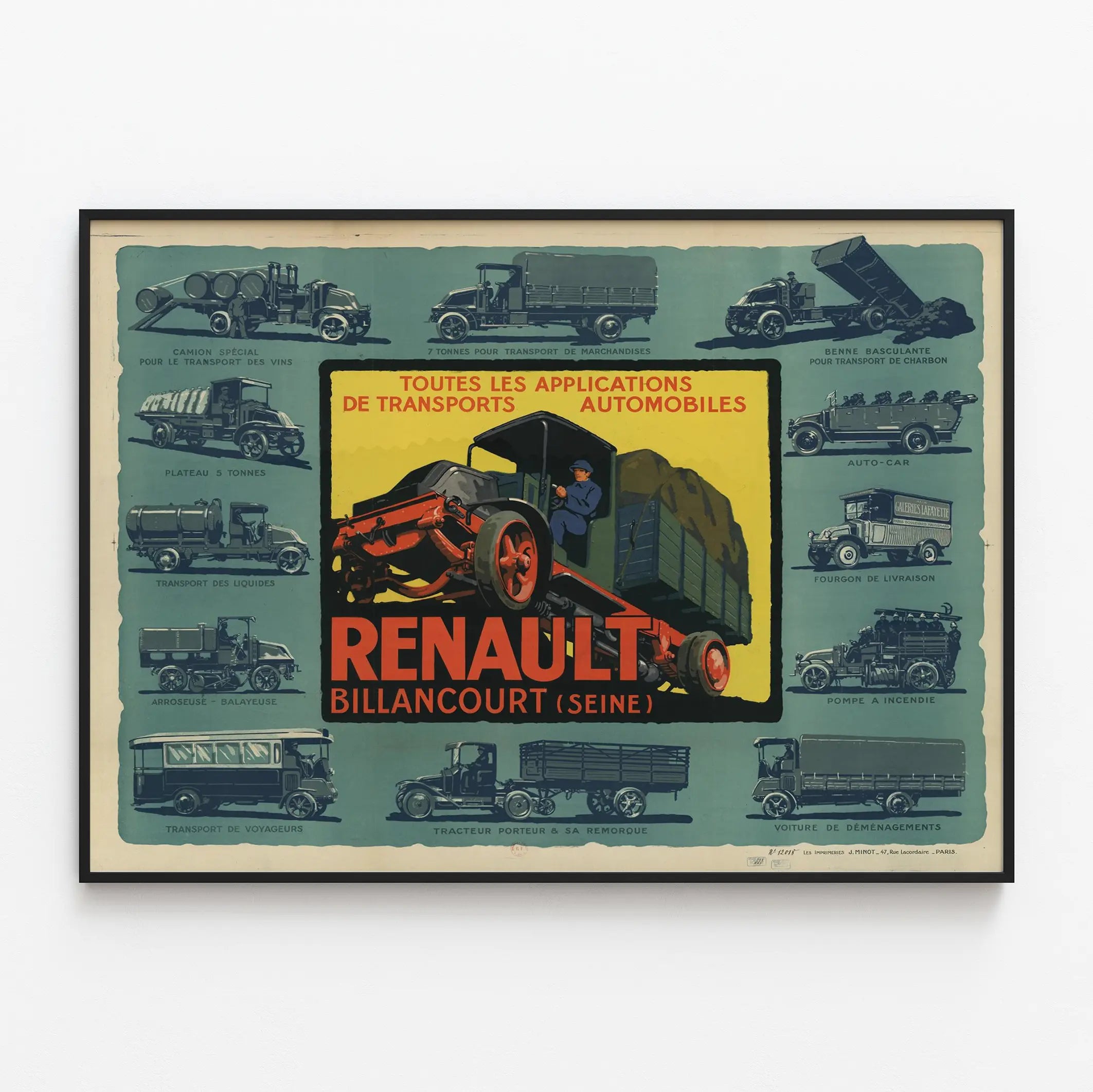 Vintage Renault Billancourt Poster for All Automotive Transport Applications