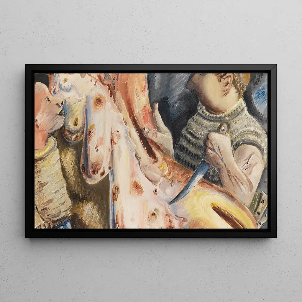 La impresión artística del cuadro "En el sacrificio" de Paul Kleinschmidt nos sumerge en una escena rural impregnada de realismo. Los colores terrosos y las sombras acentuadas aportan una profundidad impactante a esta representación del sacrificio de los animales. El artista captura con precisión la intensidad del momento, combinando emociones y tradiciones. La técnica de la pintura al óleo permite reproducir las texturas de las pieles y los pelajes, mientras que la luz juega un papel crucial para destacar las expresiones de los personajes. Esta obra, a la vez brutal y auténtica, nos recuerda los vínculos profundos entre el hombre y la naturaleza.