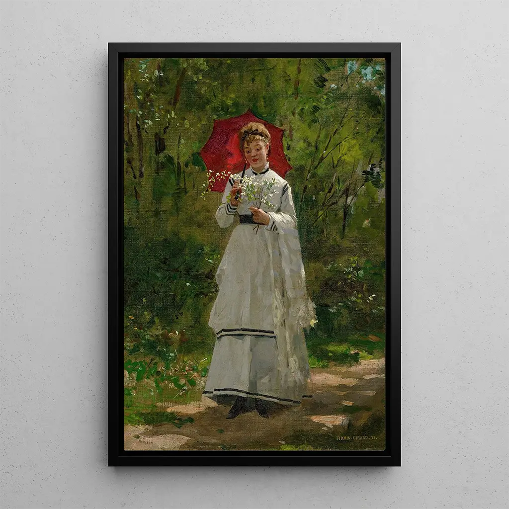 La impresión artística "Adèle L'Ombrelle" nos transporta a un momento de gracia y serenidad. Marie-François Firmin-Girard retrata a una joven, delicadamente vestida, que se protege de los rayos del sol con un elegante parasol. Los colores pastel y la luz suave crean una atmósfera soñadora, donde cada detalle, desde la tela del vestido hasta las flores circundantes, está cuidadosamente representado. Esta obra, impregnada de romanticismo, evoca una época en la que la moda y la naturaleza se entrelazaban armoniosamente, ofreciendo una visión poética de la feminidad.