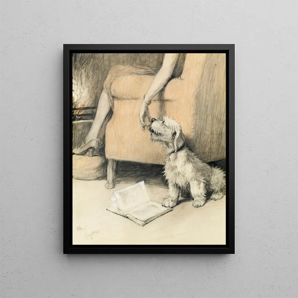 Reproducción Affection - Cecil Charles Windsor Aldin – Introducción cautivadora La obra "Affection" de Cecil Charles Windsor Aldin es una pieza maestra que trasciende el simple marco de una representación artística. Evoca sentimientos profundos y una conexión emocional que resuena con quienquiera que se tome el tiempo de contemplar esta obra. A través de un juego sutil de luz y color, Aldin logra capturar la intimidad de un momento compartido entre un niño y un animal, una escena impregnada de ternura y complicidad. Este cuadro no se limita a ser una imagen; cuenta una historia, la de la inocencia de la infancia y la pureza de los lazos afectivos. Sumergirse en este universo visual es adentrarse en un mundo donde cada detalle tiene su importancia, invitando al espectador a sentir la emoción cruda que emana de ella. Estilo y singularidad de la obra El estilo de Aldin se distingue por una maestría excepcional en el dibujo y una atención minuciosa a los detalles. En "Affection", los rasgos delicados que dibujan los rostros y las posturas de los personajes reflejan su talento para capturar la esencia misma de sus sujetos. La paleta de colores elegida, suave y tranquilizadora, contribuye a crear una atmósfera cálida, casi nostálgica. Las texturas, ya sea del pelaje del animal o de la ropa del niño, se representan con una precisión que da vida a la tela. Aldin no se limita a reproducir la realidad; la interpreta, infundiéndole una dimensión emocional que marca la diferencia. Cada pincelada parece cargada de una intención, de un deseo de transmitir una sensación, un estado de ánimo. Es esta singularidad la que hace de "Affection" una obra inolvidable e atemporal, capaz de tocar el corazón de las generaciones. El artista y su influencia Cecil Charles Windsor Aldin, nacido en 1870, es un artista cuya obra marcó su época. Criado en un entorno artístico, se distinguió rápidamente por su talento precoz y su pasión por la representación de animales y escenas de la vida cotidiana. Su estilo, influenciado por los movimientos artísticos de su tiempo, combina realismo y romanticismo, creando un lenguaje visual propio. Aldin supo imponerse en el mundo