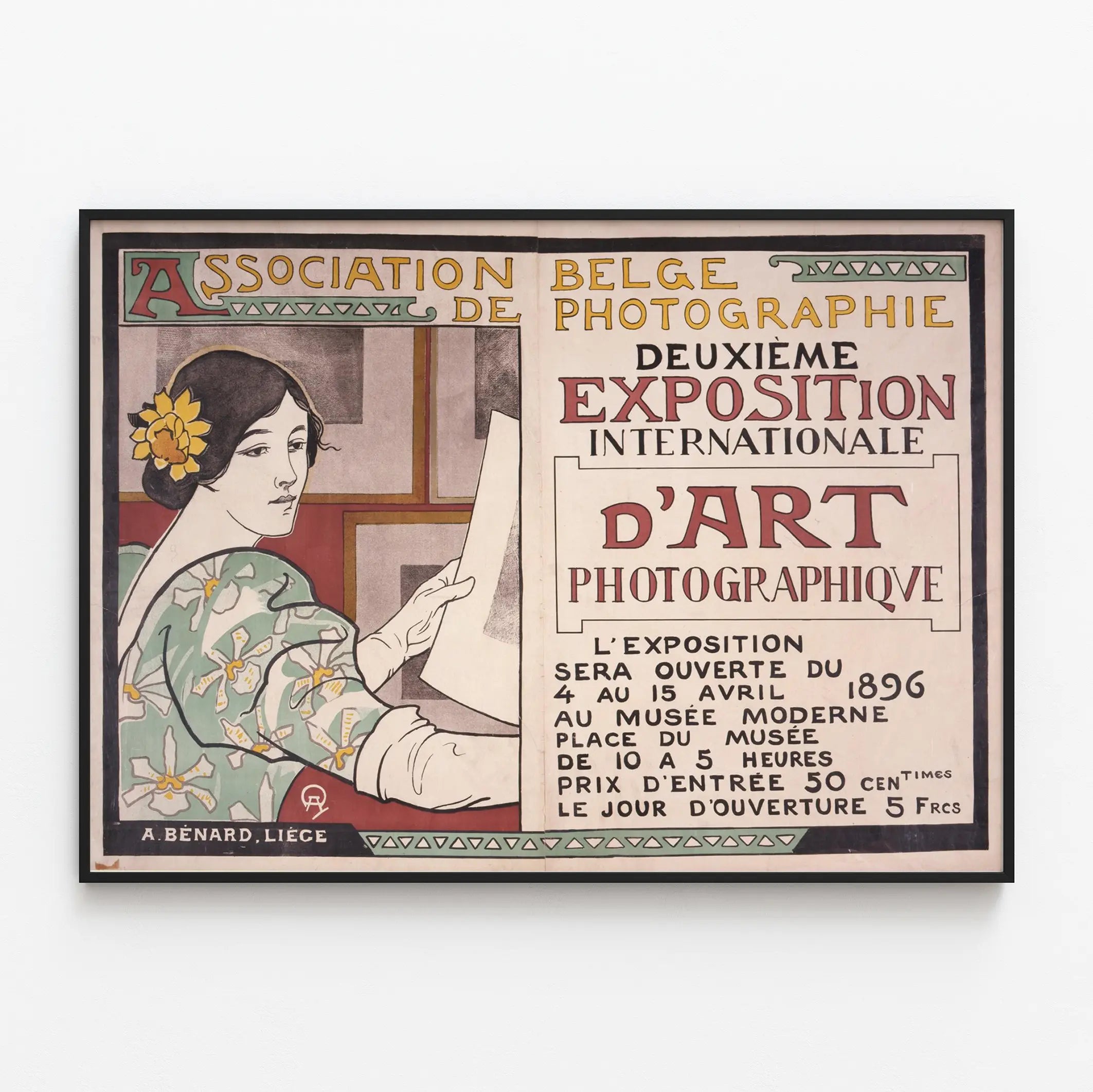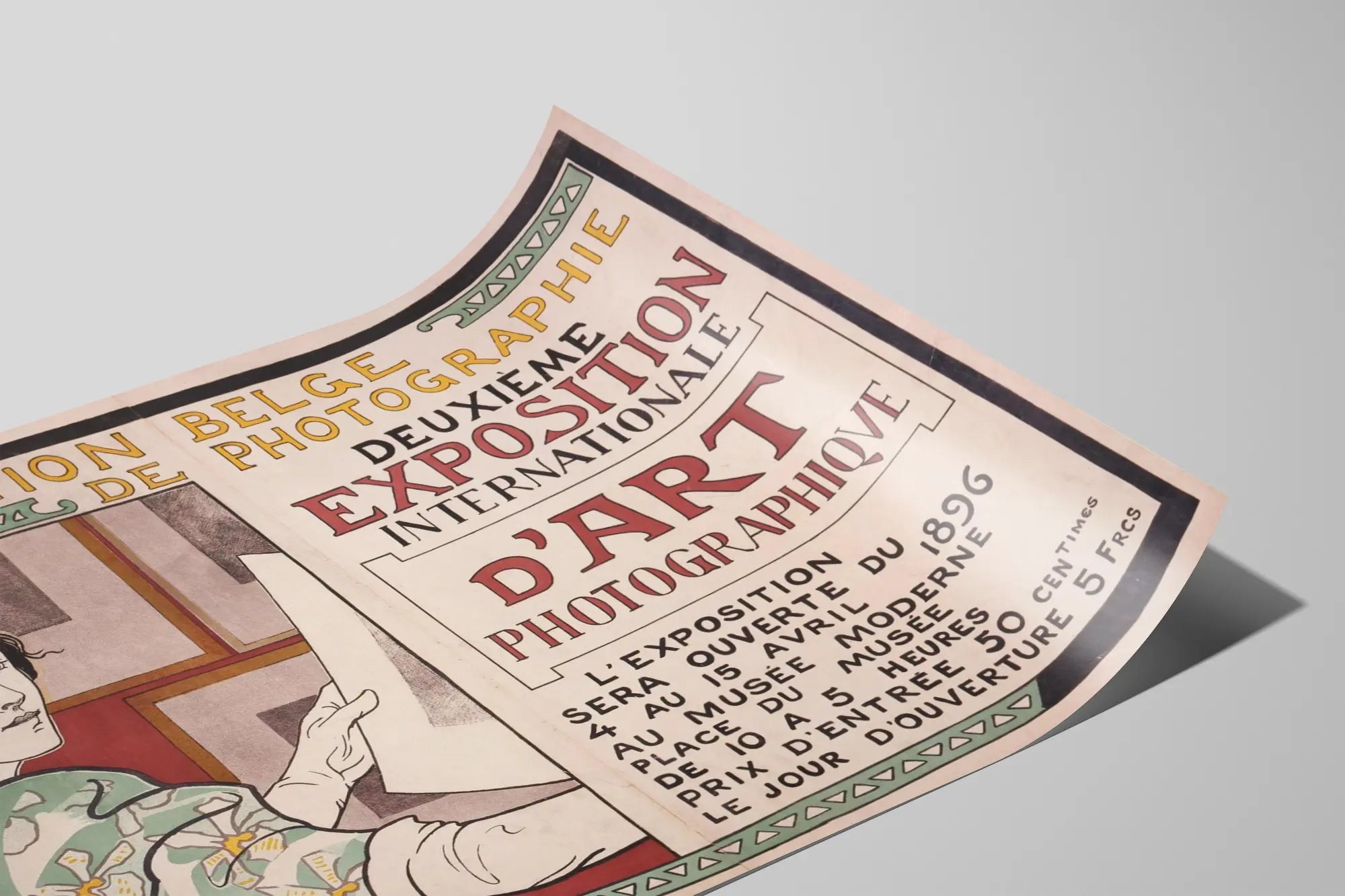 Esta cartel vintage representa la Segunda Exposición Internacional de Arte Fotográfico organizada por la Asociación Belga de Fotografía. Diseñada en un estilo gráfico típico de finales del siglo XIX, esta decoración mural destaca la elegancia sutil del arte fotográfico a través de una ilustración detallada y refinada. La imagen central muestra a una mujer estilizada, sosteniendo un documento, vestida con un vestido adornado con motivos florales en tonos verdes y amarillos, lo que aporta un toque artístico y nostálgico a este cartel. Los caracteres utilizados para el texto son variados, aportando interés tipográfico y una lectura equilibrada, con colores en rojo, amarillo y verde que contrastan con el fondo crema. Este cartel mural rememora una época en la que la fotografía era celebrada como un arte en sí misma en exposiciones internacionales de prestigio. Ideal para los entusiastas de la fotografía, los aficionados a la decoración vintage o los coleccionistas de carteles antiguos, esta pieza aporta un toque histórico y artístico a cualquier interior. Se integra perfectamente en una decoración mural temática dedicada al arte, a la fotografía o al diseño gráfico de época. Este cuadro decorativo evoca un rico patrimonio cultural y una estética cuidada, propicia para realzar una sala de estar, una oficina o una galería mural. Este cartel es una invitación a valorar nuevamente el arte fotográfico en sus espacios de vida, combinando el encanto del pasado y el estilo clásico, para una decoración mural auténtica e inspiradora.