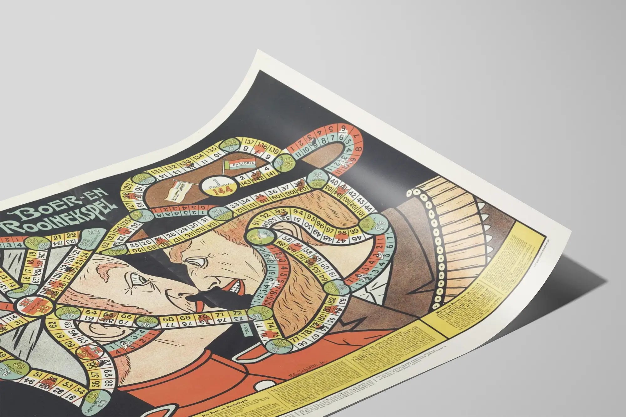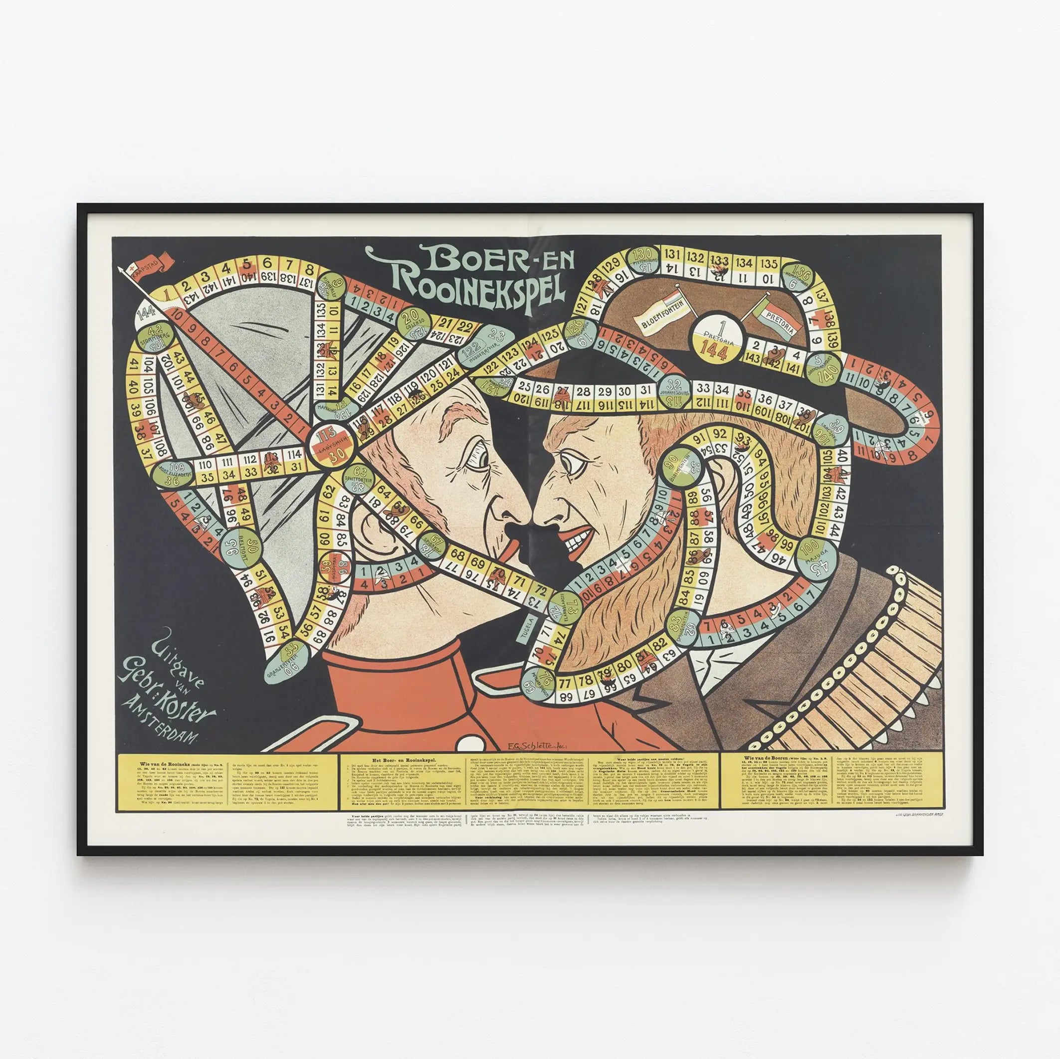 Affiche vintage de jeu de société Boer en Rooiniekspel