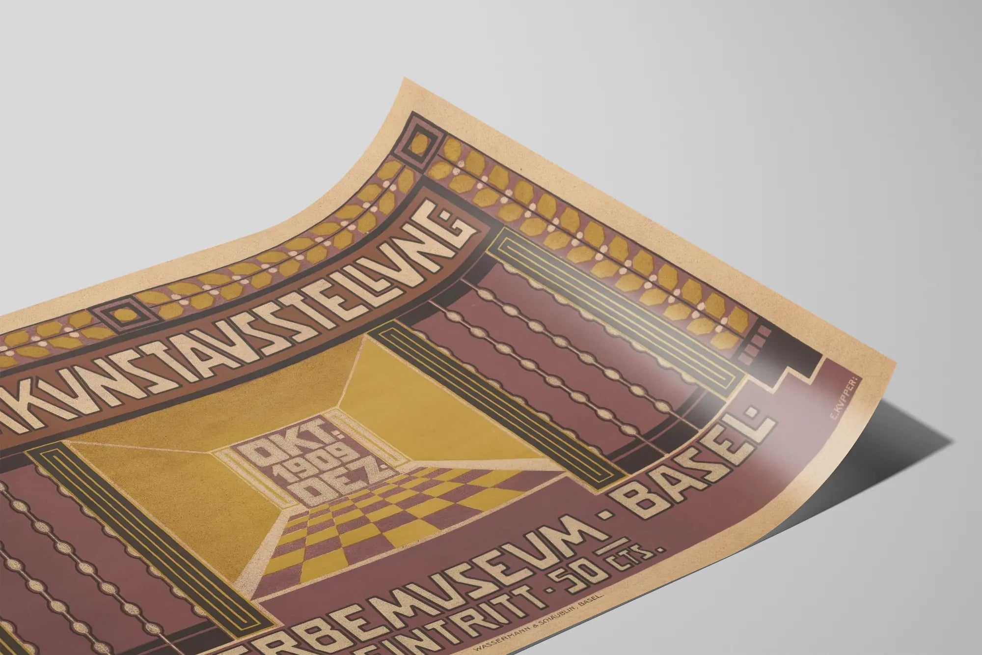 Affiche vintage exposition espace d'art au Gewerbemuseum de Bâle 1909