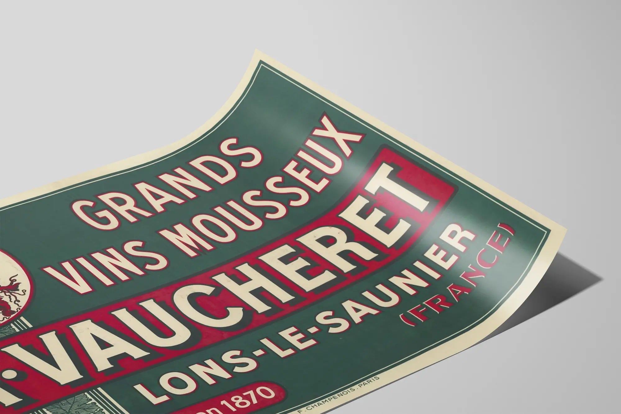 Affiche Vintage Grands Vins Mousseux A. Vaucheret Lons-le-Saunier