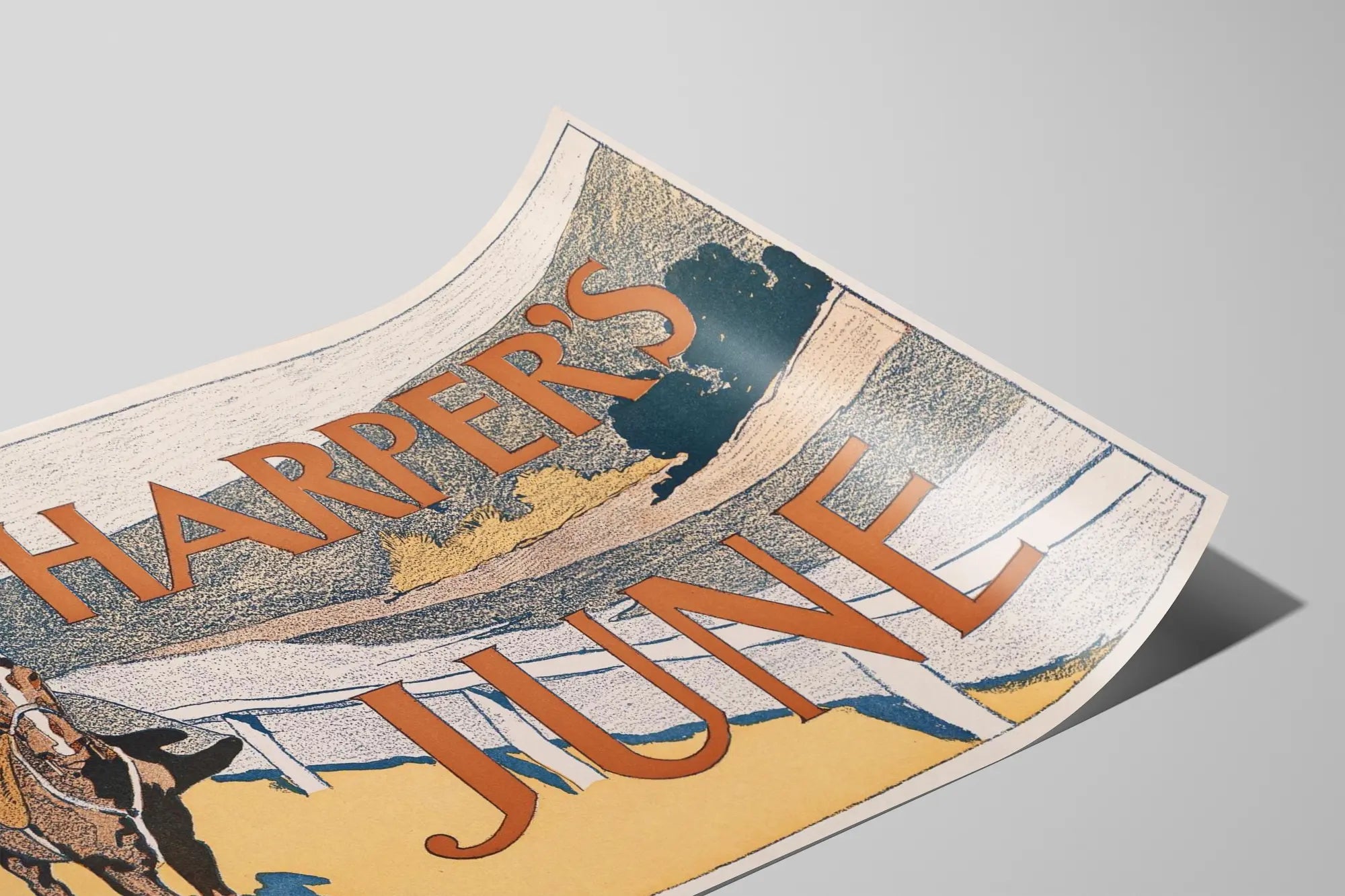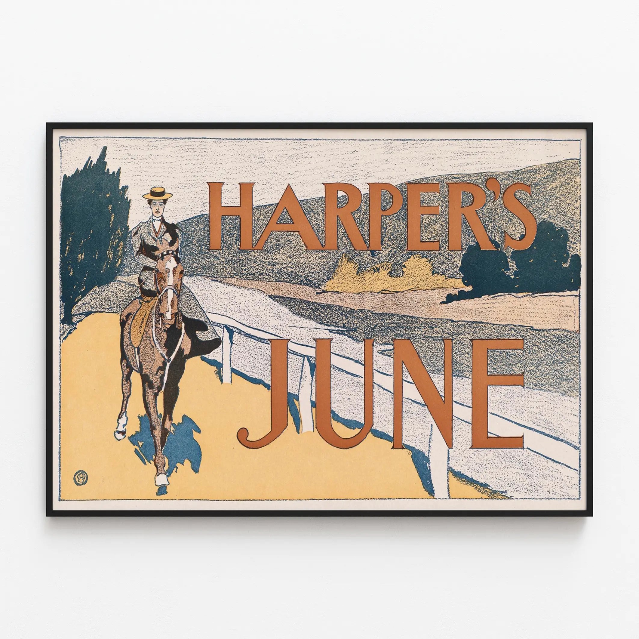 Affiche vintage Harper's June avec cavalier à cheval