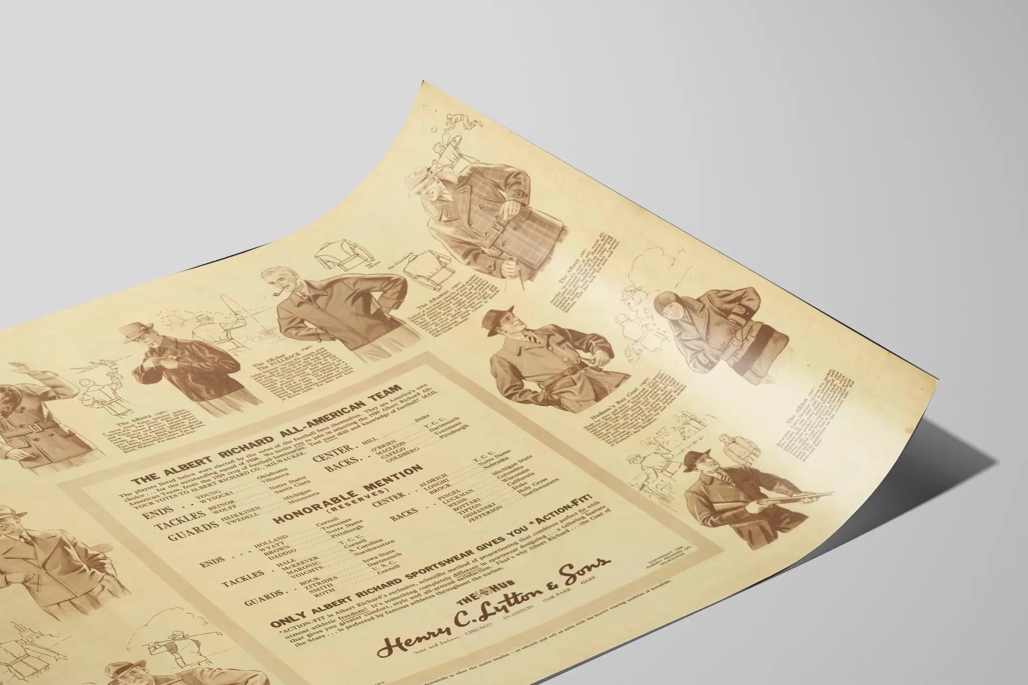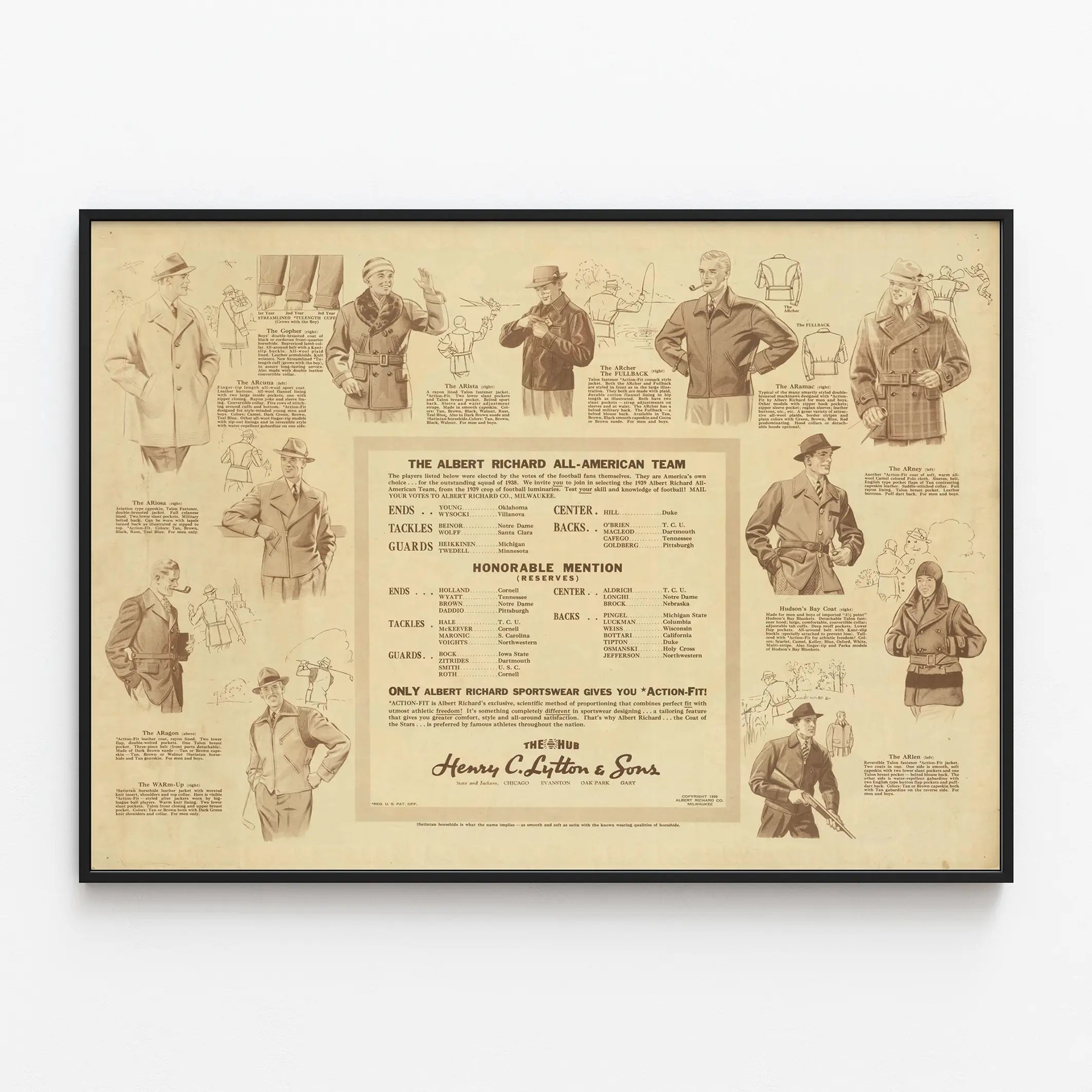 Affiche Vintage Mode Masculine Albert Richard 1939 - Football All-American Team