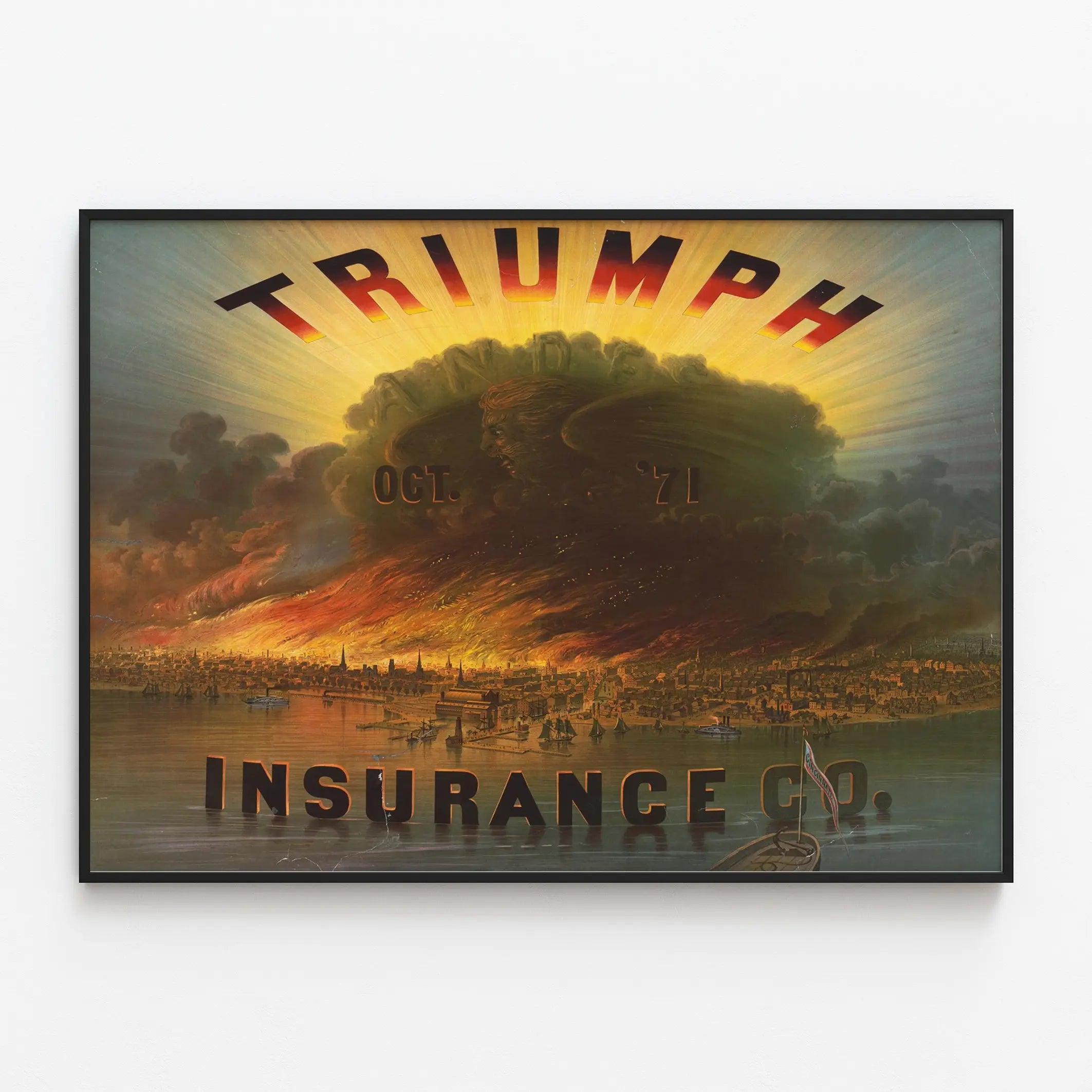 Affiche Vintage Triumph Insurance Co. Incendie Octobre 1871