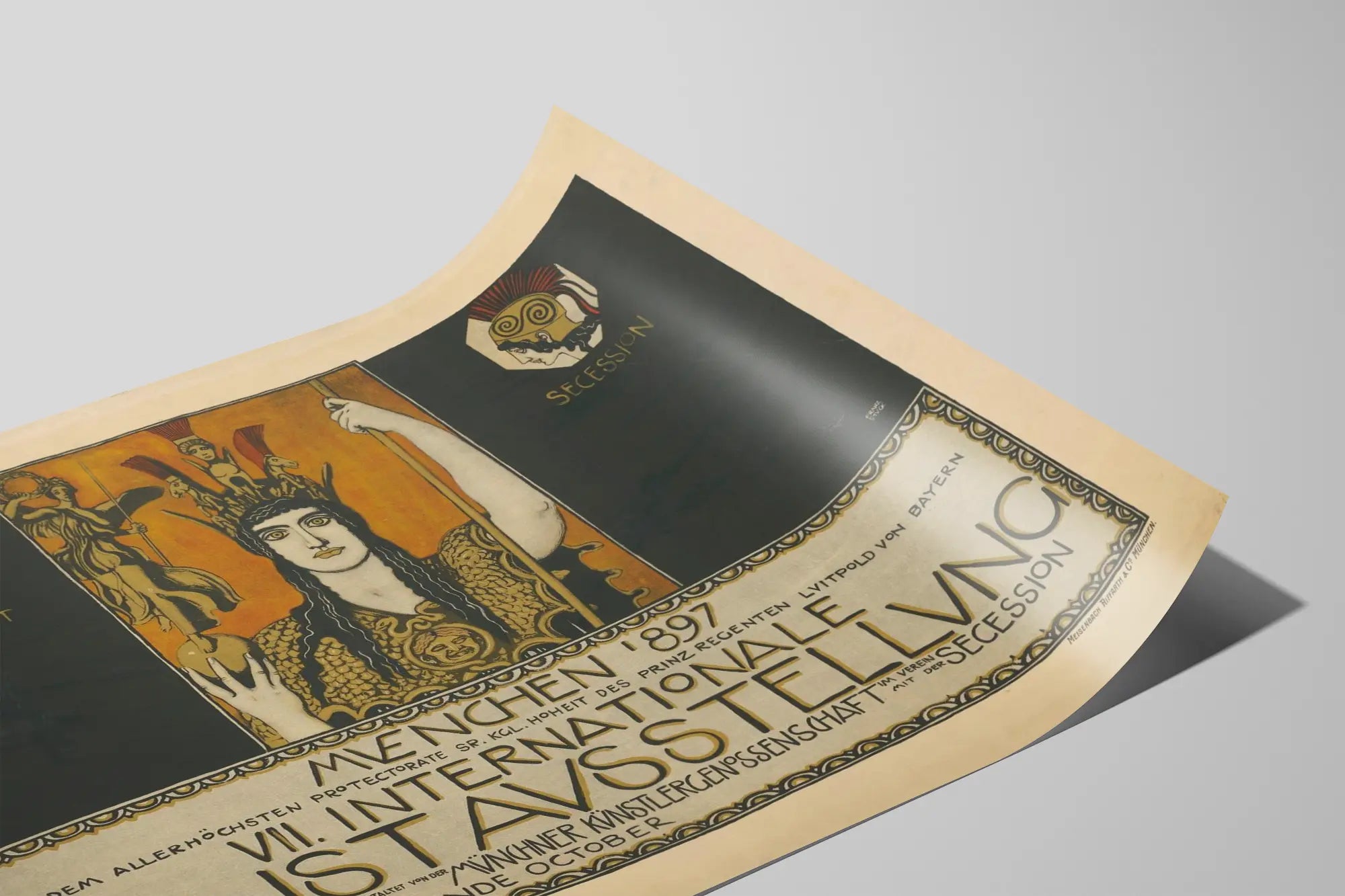 Découvrez cette affiche vintage exceptionnelle de la VIIème Exposition internationale d'art tenue à Munich en 1897. Ce poster d'art classique présente un visuel fortement inspiré de l'Art nouveau, mettant en avant une figure centrale féminine au style majestueux, avec une couronne et des attributs symboliques. La composition graphique allie des couleurs dominantes de noir, ocre et blanc cassé, pour un rendu à la fois élégant et chargé de symbolisme. Ce type d'affiche est idéal pour enrichir une décoration murale d'intérieur, qu'elle soit dans un salon, un bureau ou un espace dédié à l'art. Parfait pour les amateurs d'art ancien et les passionnés d'histoire artistique, ce poster représente un événement majeur organisé par l'association des artistes munichois en collaboration avec la Sécession, soulignant ainsi l'importance culturelle et artistique de cet événement. Ce tableau décoratif à accrocher sur un mur apporte un cachet authentique et une touche historique à tout intérieur. Intégrer une affiche de cette nature dans une collection de pièces artistiques murales permet de valoriser un style décoratif rétro tout en évoquant l'esprit de renouveau artistique de la fin du XIXe siècle. Cette décoration murale est une solution élégante pour habiller un mur avec un objet artistique chargé de caractère et d'histoire, qui invite à la contemplation et au voyage dans le temps.