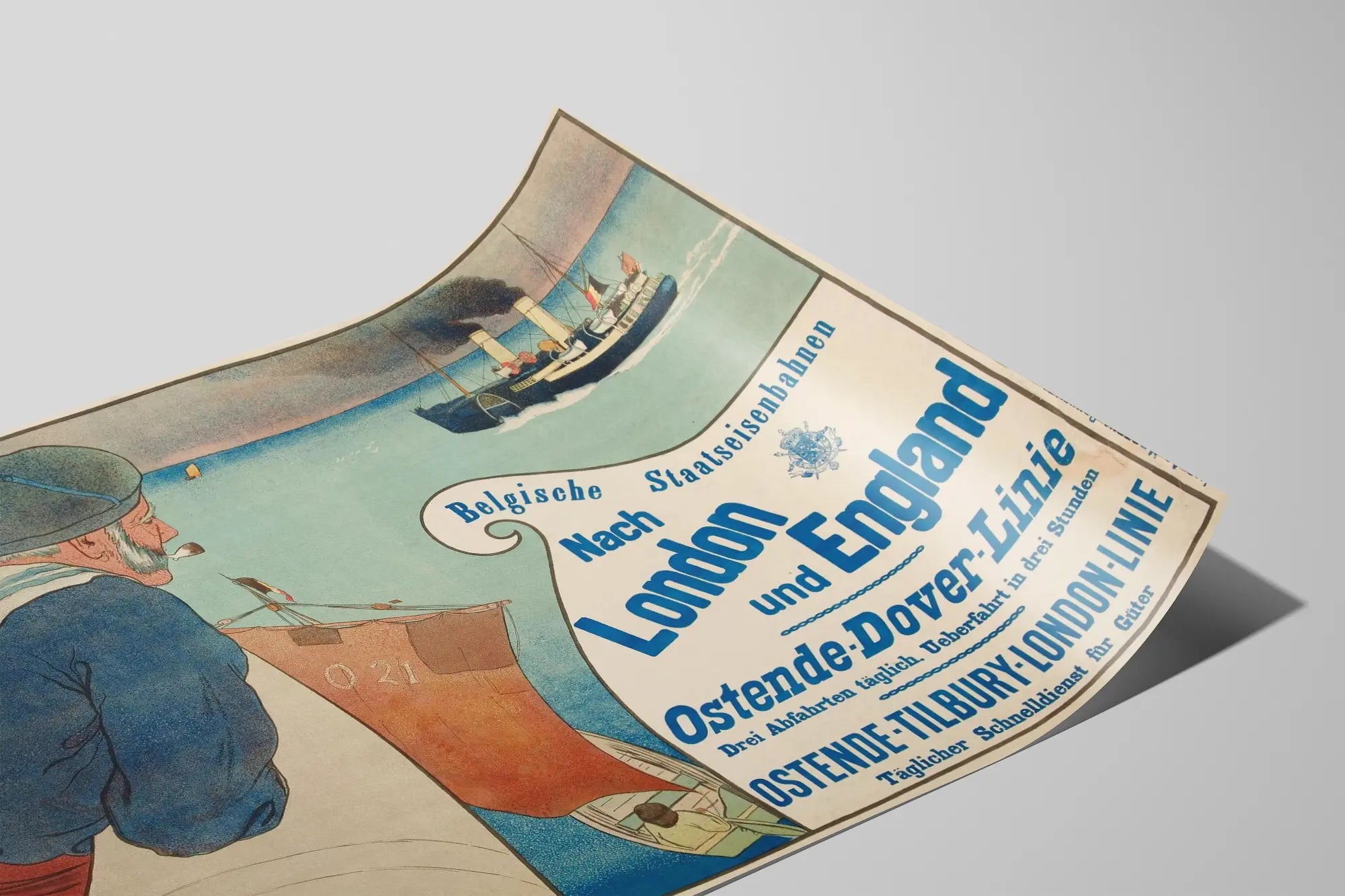 Affiche vintage voyage Belgique - ligne Ostende Londres Angleterre