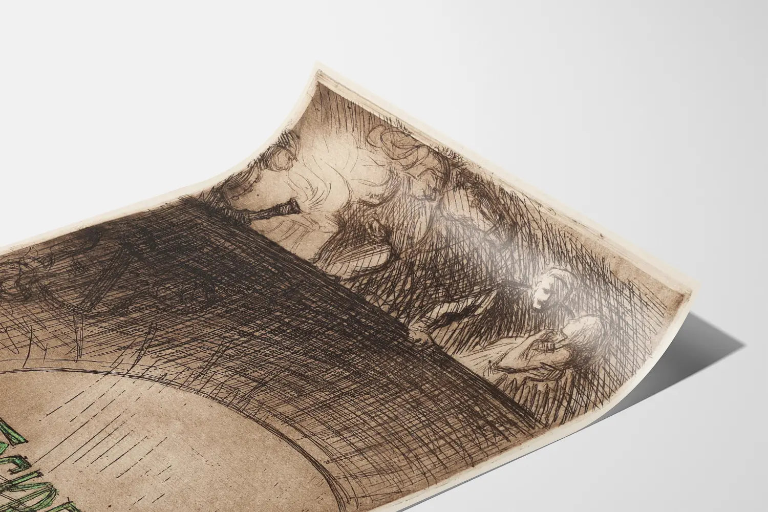 Decora tus paredes con este cartel original titulado « Forskrevet », una obra con estilo de grabado antiguo que aporta un toque de elegancia y misterio a tu interior. Este cartel se inspira en técnicas de grabado donde los trazos finamente entrelazados crean un efecto de profundidad y textura únicos. Los detalles en tinta negra sobre un fondo beige marrón confieren un encanto vintage a esta decoración mural, ideal para los amantes del arte y las representaciones gráficas singulares.