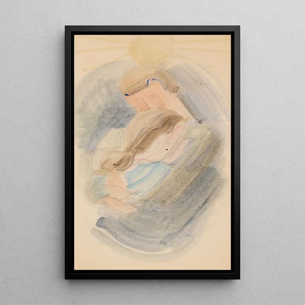 La impresión artística de la tela Étreinte II de Oskar Schlemmer captura un momento de intimidad y de conexión entre dos figuras estilizadas. Las formas entrelazadas, con contornos suaves y colores cálidos, evocan una atmósfera de ternura y complicidad. Schlemmer, con su enfoque único, logra trascender la simple representación para ofrecer una visión poética del amor. La composición, a la vez armoniosa y dinámica, invita a una contemplación profunda de la unión humana, mientras juega con los contrastes de luz y sombra.