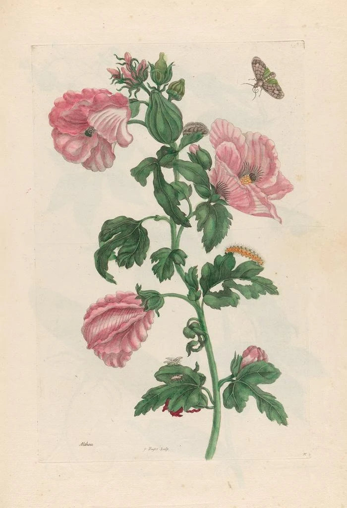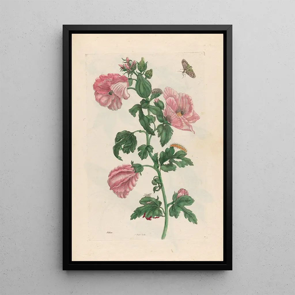 La impresión artística de Althéa, realizada por Maria Sibylla Merian, nos transporta a un mundo de delicadeza y fascinación por la naturaleza. Los detalles minuciosos de las flores y los insectos, representados con una precisión notable, testimonian la observación atenta de la artista. Los colores vivos y las tonalidades sutiles crean una composición armoniosa, donde cada elemento parece interactuar con los demás. Esta obra, en la encrucijada del arte y la ciencia, invita a una contemplación profunda de la belleza del mundo natural, celebrando además la diversidad de la vida.