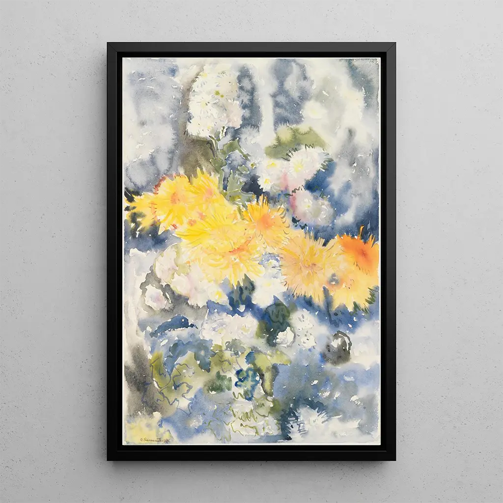 En "Jaune et bleu", Charles Demuth explora las tonalidades y los contrastes a través de una paleta audaz. Los vibrantes tonos de amarillo se mezclan con toques de azul profundo, creando un diálogo visual fascinante. La composición, a la vez abstracta y figurativa, evoca una sensación de ligereza y equilibrio. Las formas geométricas, acompañadas de líneas fluidas, invitan al espectador a sumergirse en esta obra donde el color se convierte en el verdadero protagonista, generando una reflexión sobre la percepción y la emoción.