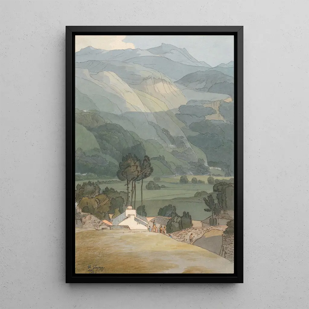 La obra "Ambleside" de Francis Towne nos sumerge en un paisaje sereno donde la naturaleza y la arquitectura se encuentran con gracia. Los tonos suaves y pastel, que combinan matices de verde, azul y tierra, crean una atmósfera tranquilizadora. La técnica de la acuarela, tan característica de Towne, permite una fluidez en las formas y una ligereza que evocan la brisa ligera de los lagos ingleses. La composición hábilmente equilibrada, con elementos naturales enmarcando edificios, invita a una contemplación tranquila, como si uno mismo estuviera en las orillas del lago.