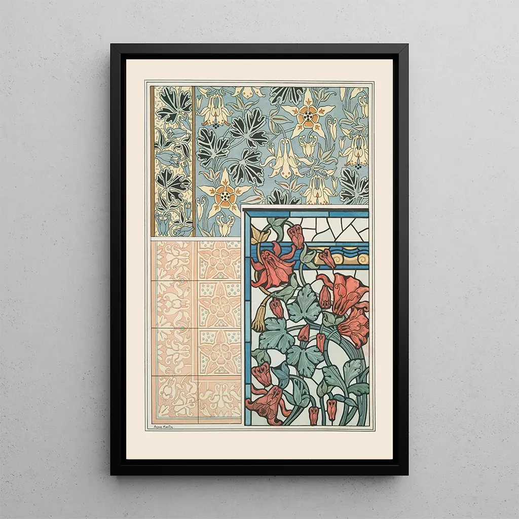 La impresión artística Ancolie 3 de Maurice Pillard Verneuil es una verdadera celebración de la floración. Esta obra, rica en colores y texturas, ofrece un espectáculo visual cautivador. Los tonos brillantes de las flores contrastan con fondos sutiles, creando una dinámica que atrae inmediatamente la mirada. Verneuil, con su estilo distintivo, logra capturar la ligereza y la belleza efímera de las flores, mientras juega con las formas orgánicas que caracterizan el Art Nouveau. Cada elemento de la composición parece bailar, evocando una naturaleza en plena efervescencia, donde cada detalle está cuidadosamente pensado para maravillar.
