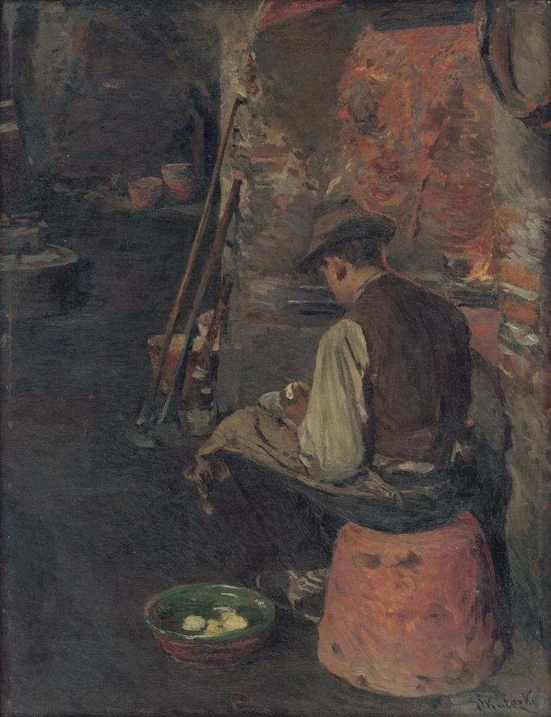 La obra "Antes del almuerzo" de Dominik Skutecký invita al espectador a sumergirse en una escena íntima donde lo cotidiano se mezcla con una atmósfera de serenidad y contemplación. Esta pintura, a la vez sencilla y profunda, evoca el momento suspendido de una pausa matutina, cuando el mundo exterior parece en espera. Los personajes, congelados en su rutina, testimonian una época en la que el tiempo transcurría con una dulzura palpable. La mirada se pierde en los detalles minuciosos, cada elemento del cuadro cuenta una historia, cada matiz de color acentúa la emoción de este momento compartido. Estilo y singularidad de la obra Skutecký se distingue por su enfoque realista, combinando una técnica precisa con una sensibilidad palpable. "Antes del almuerzo" es una ilustración perfecta de su estilo, donde la luz juega un papel esencial, iluminando los rostros y los objetos con una delicadeza casi poética. Los tonos cálidos y terrosos crean un ambiente acogedor, mientras que las sombras aportan una profundidad que invita a la exploración. La composición del cuadro, equilibrada y armoniosa, guía la mirada a través de la escena, revelando poco a poco las sutilezas de la interacción humana. Este cuadro no se limita a representar un momento; captura su esencia, ofreciendo al espectador una experiencia inmersiva que trasciende el simple acto de mirar. El artista y su influencia Dominik Skutecký, figura emblemática de su época, supo imponerse por su visión única de la realidad. Influenciado por los grandes maestros del pasado, supo reinterpretar su legado a través de un prisma moderno, inyectando una sensibilidad contemporánea en temas clásicos. Su obra, rica en emociones y reflexiones, resuena especialmente en un mundo en constante evolución, donde la búsqueda de la autenticidad y la conexión humana sigue siendo actual. Skutecký no se limita a pintar; cuenta historias, evoca recuerdos y suscita emociones, haciendo de cada cuadro una ventana abierta al alma humana. Su capacidad para capturar el instante, para inmortalizar la belleza de los momentos ordinarios, lo convierte en un artista imprescindible, cuya influencia perdura más allá de las fronteras de su tiempo. Una decoración mural de excepción firm