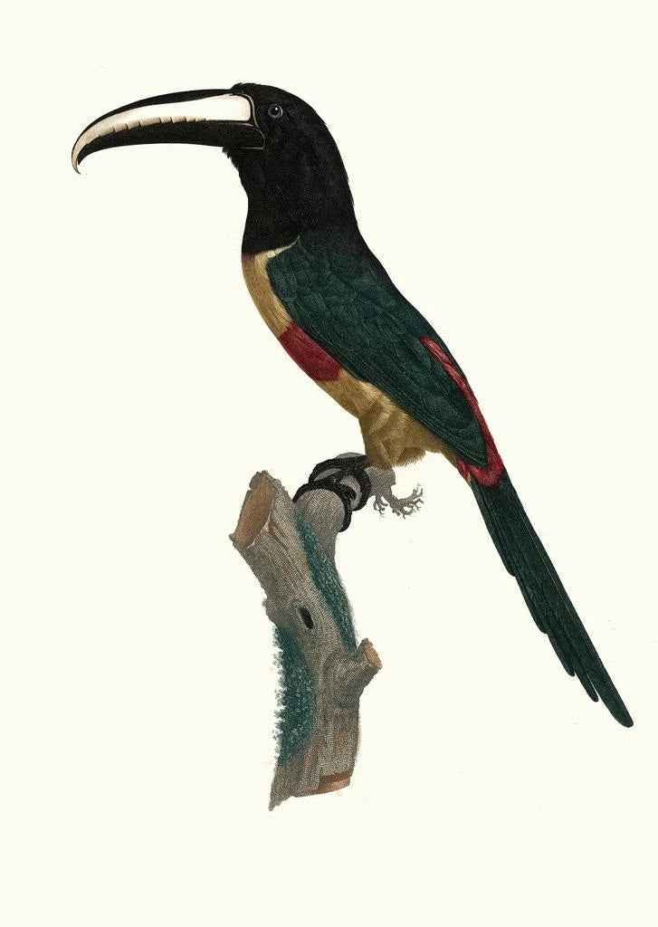 Jacques Barraband, pintor e ilustrador francés del siglo XVIII, es reconocido por sus representaciones precisas y poéticas de las aves. Influenciado por el movimiento naturalista, supo capturar la esencia misma de sus sujetos con una precisión notable. Barraband trabajó principalmente para la ménagerie del rey, lo que le permitió estudiar de cerca los especímenes exóticos. Su obra, de la que L'Aracari ceinture rouge es un ejemplo emblemático, testimonia su compromiso de combinar arte y ciencia. A través de sus creaciones, contribuyó a enriquecer el conocimiento ornitológico de su época.