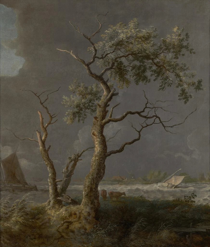 En el mundo del arte, algunas obras logran capturar la esencia misma de la naturaleza, tanto en su belleza como en su serenidad. "Árboles junto al agua (1)" de Allaert van Everdingen es una de esas obras que invita a una profunda contemplación. Pintada en el siglo XVII, este lienzo evoca un paisaje idílico, donde el encuentro entre la tierra y el agua parece fundirse en una armonía perfecta. La luz, los colores y la textura se entrelazan para crear una atmósfera tranquila, donde el espectador puede casi escuchar el susurro del agua y sentir la brisa a través de las hojas de los árboles. Esta impresión artística ofrece una puerta de entrada a un universo donde la naturaleza es reina, recordando a los observadores la belleza atemporal que nos rodea.