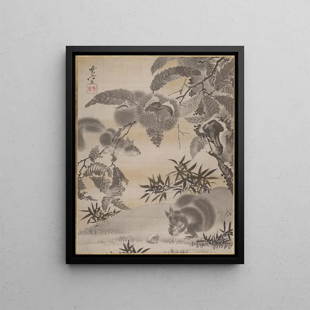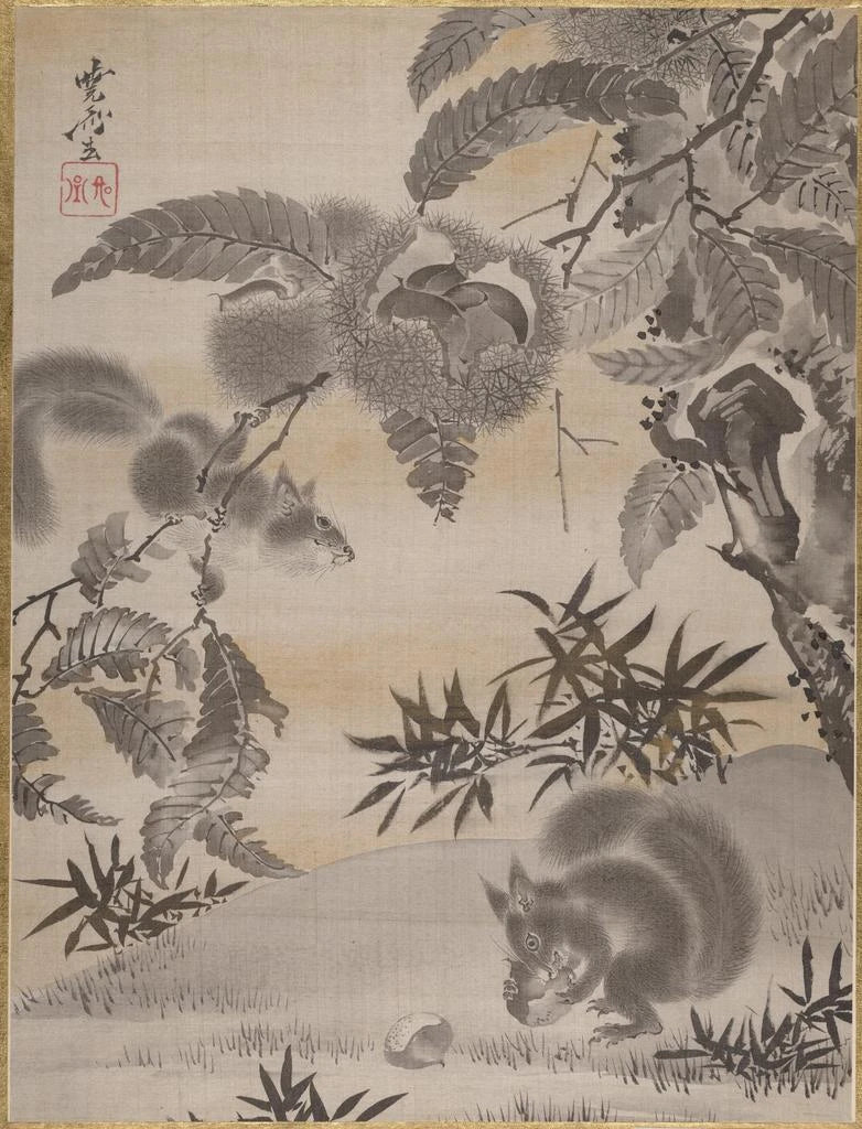 Ardillas recogiendo castañas - Kawanabe Kyōsai