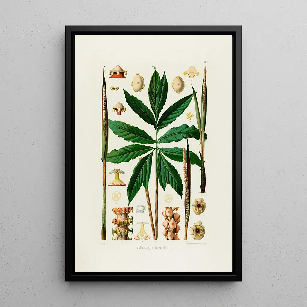 La impresión artística de "Aroideae Maximilianae Pl25" es una pieza decorativa que enriquecerá cualquier espacio, ya sea un salón, una oficina o un dormitorio. Su calidad de impresión y fidelidad a los detalles originales la convierten en una elección ideal para los amantes de la botánica o del arte. Este cuadro atrae la mirada y genera conversaciones, además de aportar un toque de naturaleza a su interior. Al integrar esta obra en su decoración, no solo añade una pieza de arte, sino también un elemento de serenidad y elegancia a su entorno.