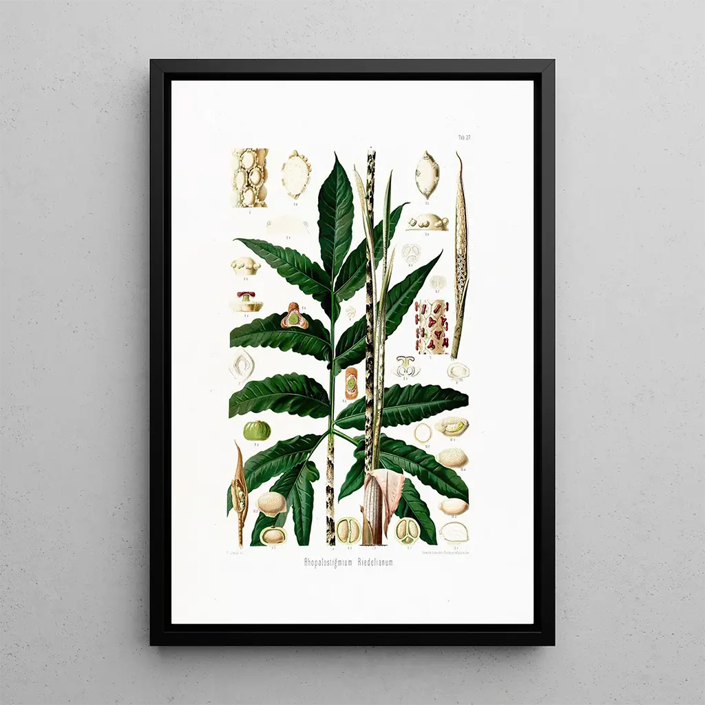 Aroideae Maximilianae Pl27 : una celebración de la naturaleza exuberante La obra "Aroideae Maximilianae Pl27" de Heinrich Wilhelm Schott es una verdadera oda a la biodiversidad. Esta ilustración botánica, realizada con una precisión meticulosa, captura la belleza de las hojas y las flores de esta planta tropical. Los colores vibrantes, que van desde verdes profundos hasta matices brillantes de amarillo y violeta, crean una atmósfera viva y dinámica. La técnica de la acuarela, combinada con detalles delicados, da vida a esta composición, invitando al espectador a sumergirse en el universo exuberante de las Aroideae. Cada trazo de pincel parece respirar la frescura y la vitalidad de la naturaleza. Heinrich Wilhelm Schott : un pionero de la ilustración botánica Heinrich Wilhelm Schott, botánico e ilustrador del siglo XIX, marcó su época por sus contribuciones al estudio de las plantas tropicales. Nacido en 1794, dedicó su vida a la exploración y documentación de la flora de América del Sur y las islas del Pacífico. Su trabajo fue influenciado por los descubrimientos científicos de su tiempo, especialmente el interés creciente por la ilustración científica y la botánica. Schott supo combinar rigor científico y sensibilidad artística, haciendo de sus obras referencias en el campo de la ilustración botánica. "Aroideae Maximilianae Pl27" es un testimonio de su talento y compromiso con la naturaleza. Una adquisición decorativa con múltiples ventajas La impresión artística de "Aroideae Maximilianae Pl27" es una elección ideal para aportar un toque de verdor y frescura a su interior. Ya sea en una sala de estar, una oficina o un dormitorio, este cuadro cautivador se integra armoniosamente en diversos estilos de decoración. Su calidad de impresión garantiza una fidelidad excepcional a los detalles de la obra original, ofreciendo además un atractivo estético indiscutible. Al elegir esta obra, no solo invita a la belleza de la naturaleza a su hogar, sino que también enriquece su espacio con una pieza de arte que despierta curiosidad y admiración.
