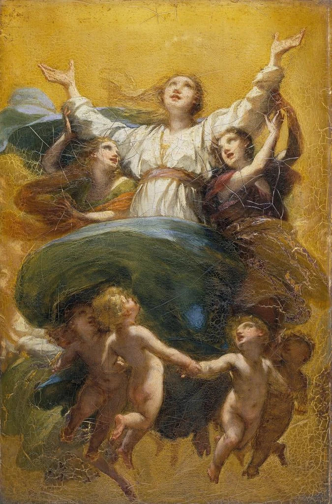 Pierre-Paul Prud'hon, activo a finales del siglo XVIII y principios del XIX, es reconocido como uno de los precursores del romanticismo en Francia. Influenciado por los grandes maestros del Renacimiento y del Barroco, desarrolla un estilo único, que combina sensualidad y espiritualidad. Sus obras, a menudo cargadas de emoción, reflejan una búsqueda constante de armonía entre el hombre y lo divino. La Asunción de la Virgen, realizada en un contexto donde la pintura religiosa experimenta un renacimiento, encaja perfectamente en esta búsqueda artística, haciendo de Prud'hon una figura imprescindible de su época.